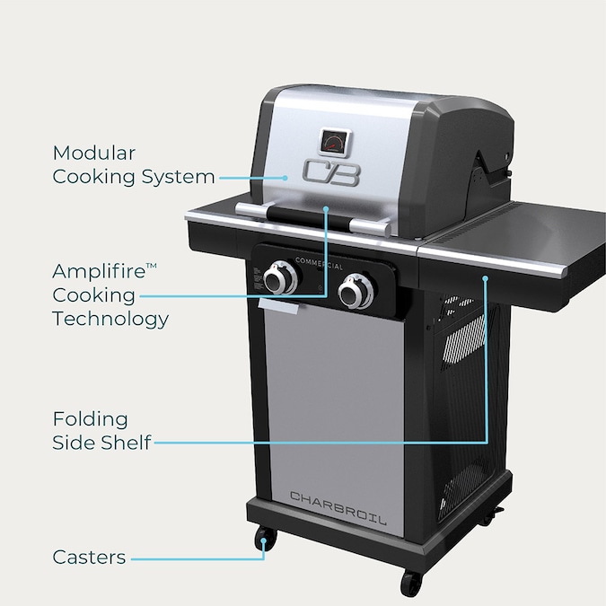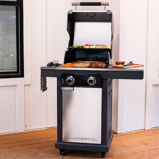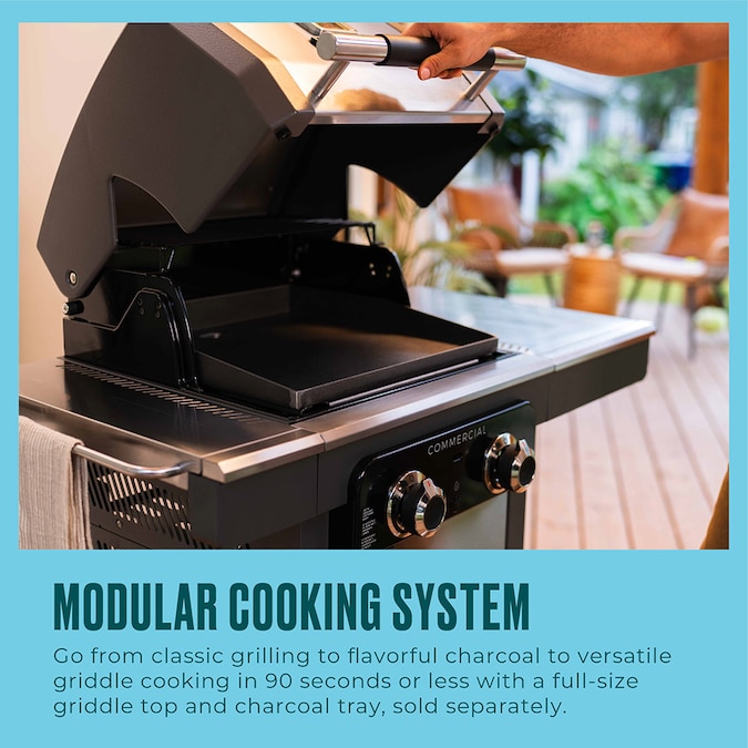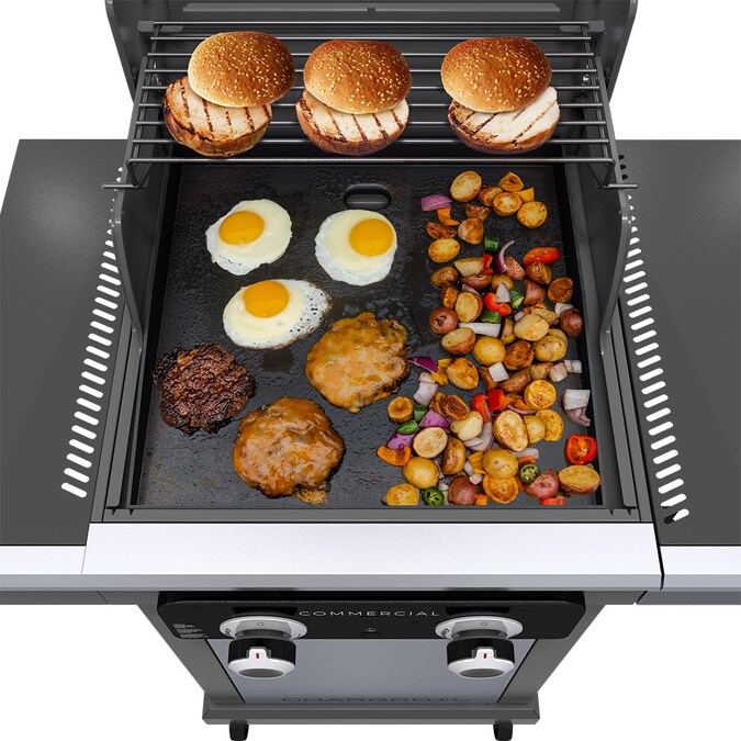 The Charbroil® Commercial Series™ 2 Burner Gas Grill & Griddle is designed for the versatile backyard griller who wants to broaden their culinary horizons…Effortlessly transform this space-efficient 2 Burner backyard appliance to a grill, griddle or charcoal grill (Gas2Coal® charcoal tray sold separately). Want to sear steaks to caramelized perfection on the grill, cook up a batch melted cheesesteaks for the family on the griddle, or slow things down with smokey, charcoal-infused BBQ platter for this weekend’s get-together? Now you can. In less than 90 seconds, you can switch between cooking modes to serve a one-of-a-kind menu that’ll have people talking until your next epic meal. Embrace the versatility of the Commercial Series™ 2 Burner Gas Grill and discover that the cooking possibilities are endless.