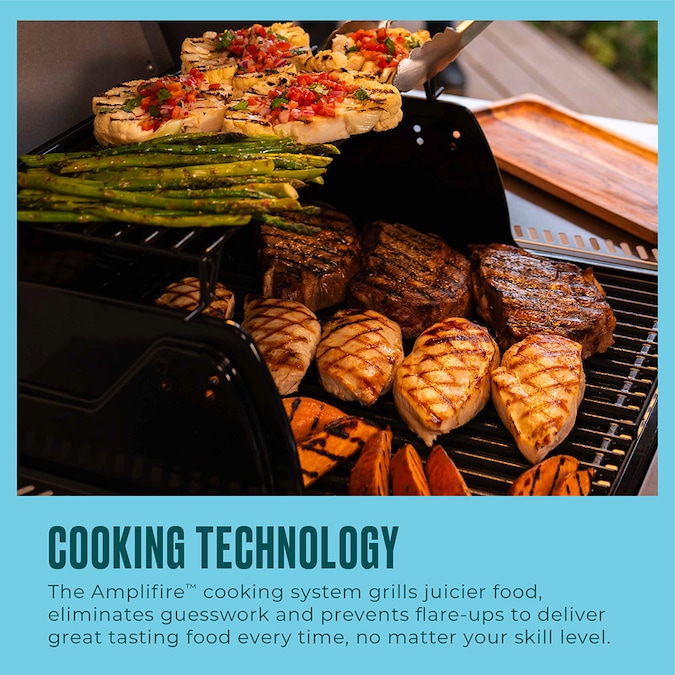 - Amplifire cooking technology prevents flare-ups and delivers TRU Infrared™ technology for even heating and leaves your food up to 50% juicier