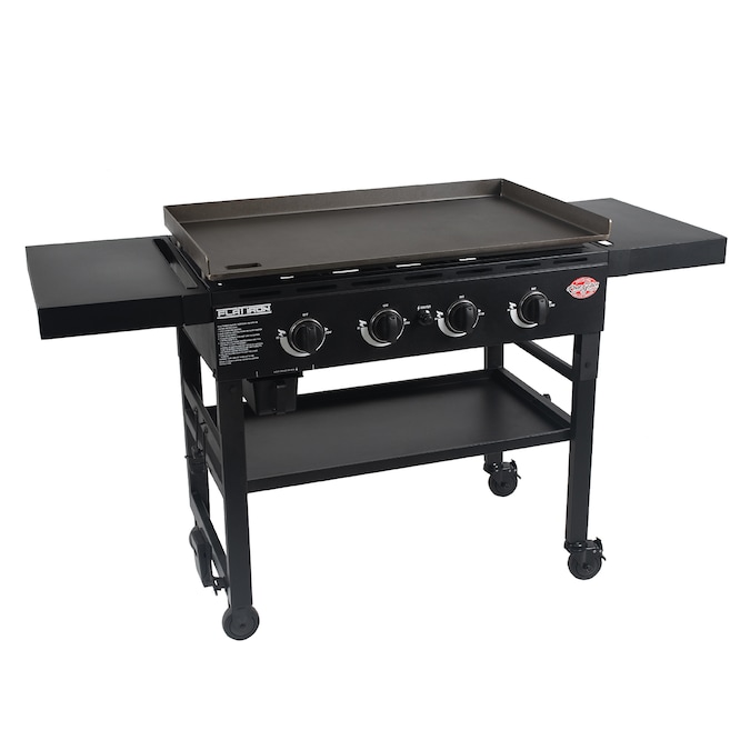 - Four-burner gas griddle with 775 sq in of cooking space