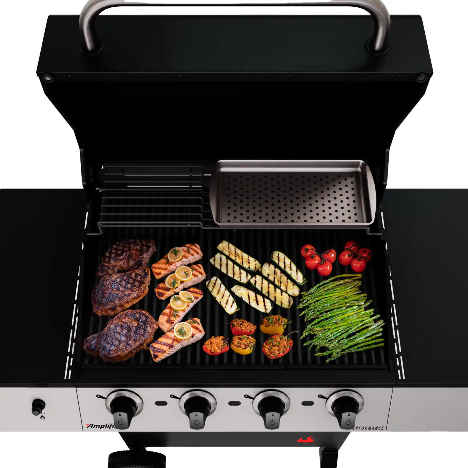 The Charbroil Performance Series 4-Burner Gas Grill is versatile, reliable and equipped with everything you need to get the good times going. With 435 square-inches of primary cooking space and a side burner, you’ll have plenty of room to grill a variety of food. We included the Chef’s Delite tray to cook your most delicate foods and equipped the side shelves to work with Gear Trax accessories for a more organized workspace. It’s easy to assemble and equipped with electronic ignition to ensure reliable starts and a sleek upgraded design, with LED-illuminated control knobs, for classic good looks.