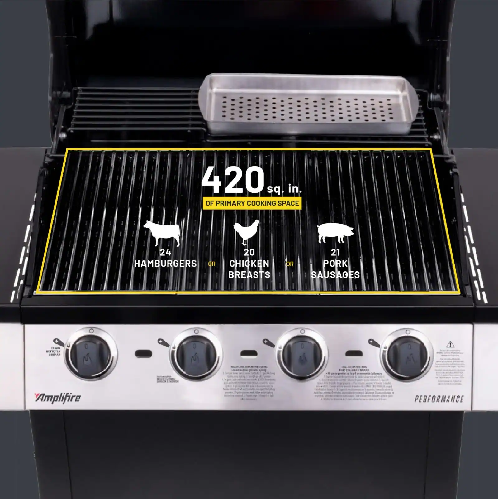 - Cooking Surface Area: 435 square inches