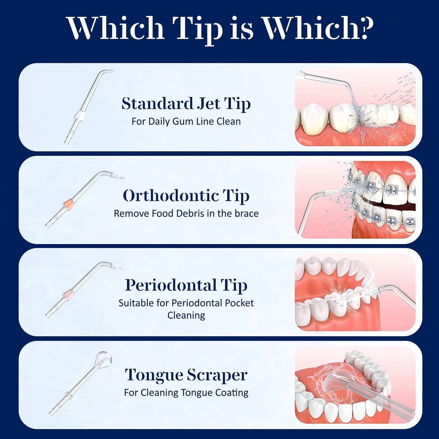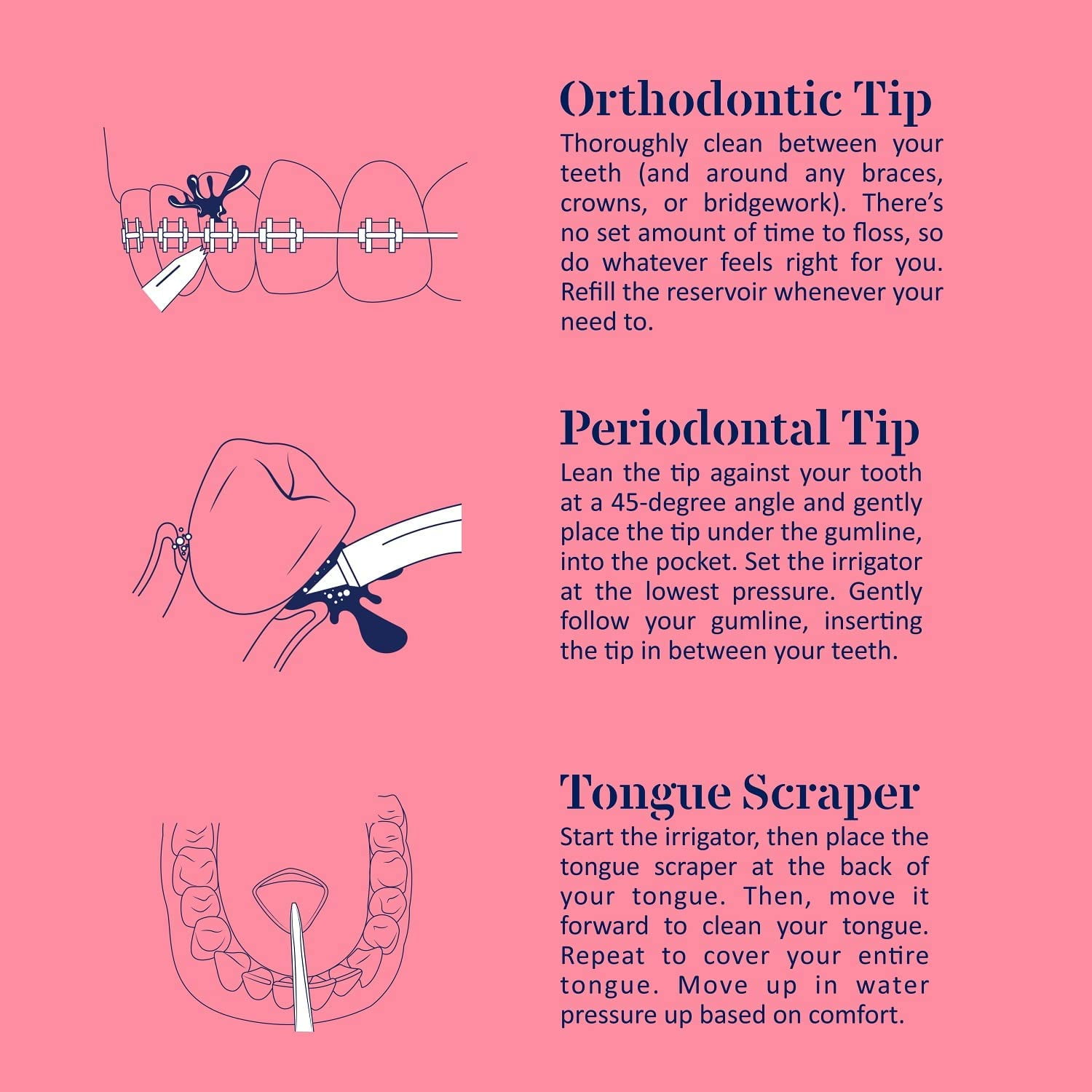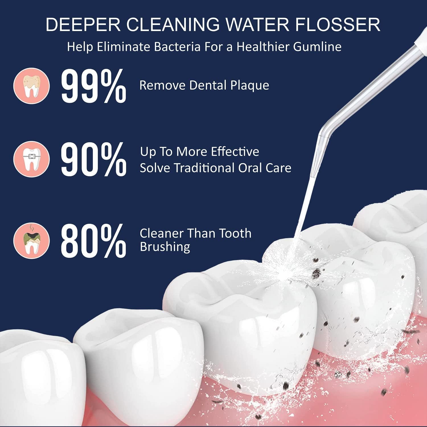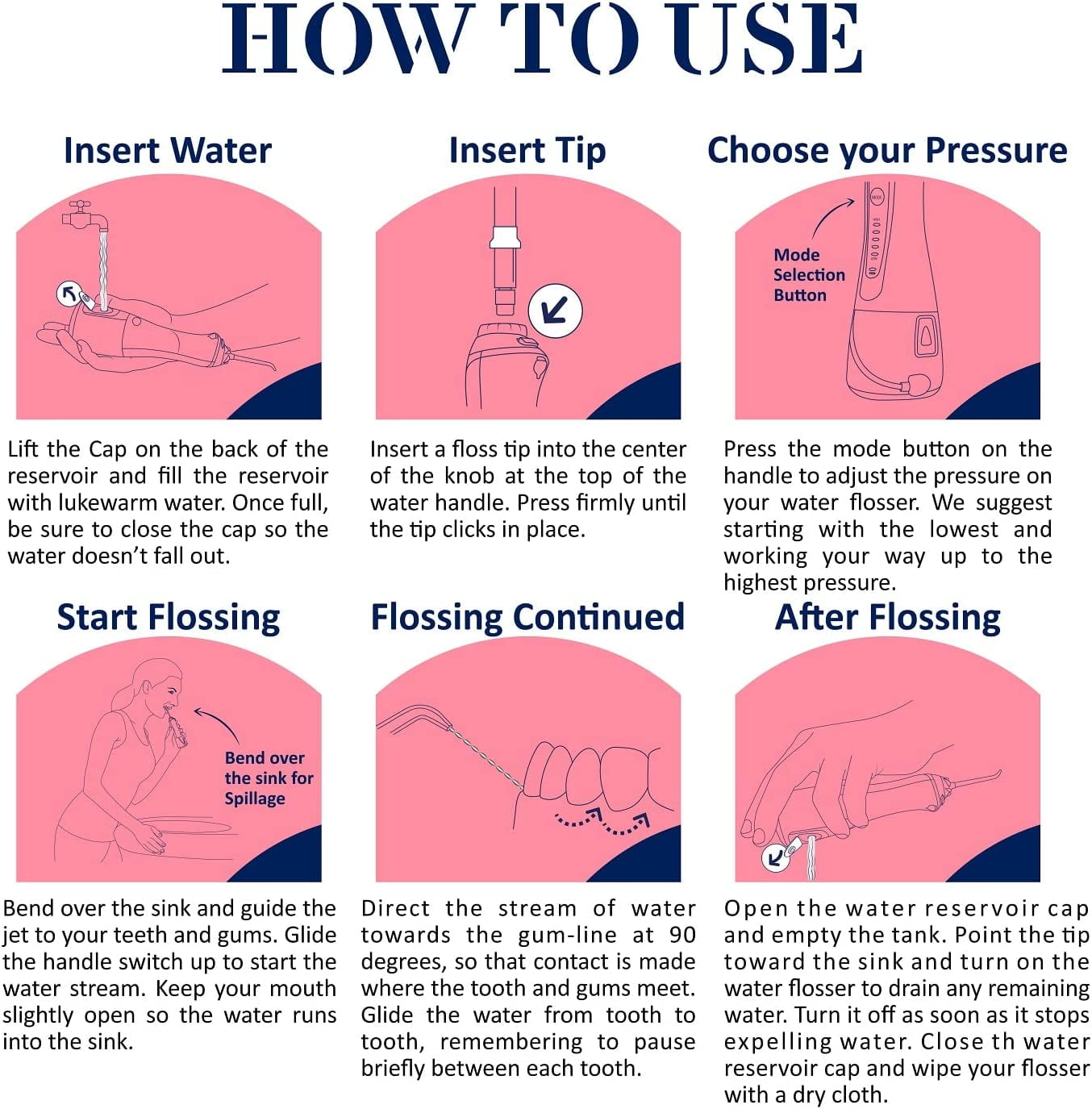 Cordless water flosser Five (5) water pressure modes Five (5) reusable flossing heads High-quality, rechargeable lithium battery Large, easy-to-fill 300 mL water tank Precision cleaning and gentle on sensitive gums Supports kids and adults (Ages x and up) Deep-Cleaning Water Flosser – Designed to let you clean between teeth, along the gumline, over and on braces and even around dental work our water flossing system makes it easy to reach every spot in your mouth for a deeper, more effective clean. Custom Pressure for Sensitive Gums – The Cheeky water flosser professional system features five individual low-to-high pressure settings to make it easier to really clean your mouth without irritating sensitive gums or teeth. High-Quality, Reusable Flossing Heads – Each portable water flosser also comes with five floss heads to support long-term flossing efforts or so you can swap them out between different users in your family. Compact, Portable and Rechargeable – A large capacity 300 mL water tank and built-in lithium battery make it easy to floss in your bathroom, on the couch or when you’re on vacation. Just fill it up, attach the floss head and keep your mouth clean. Fast, Efficient and Clean Use – Unlike manual water flosser thread that can be tough to manage, uncomfortable and even wasteful our reusable, rechargeable water flossers for teeth and gums make flossing quick, easy and efficient.
