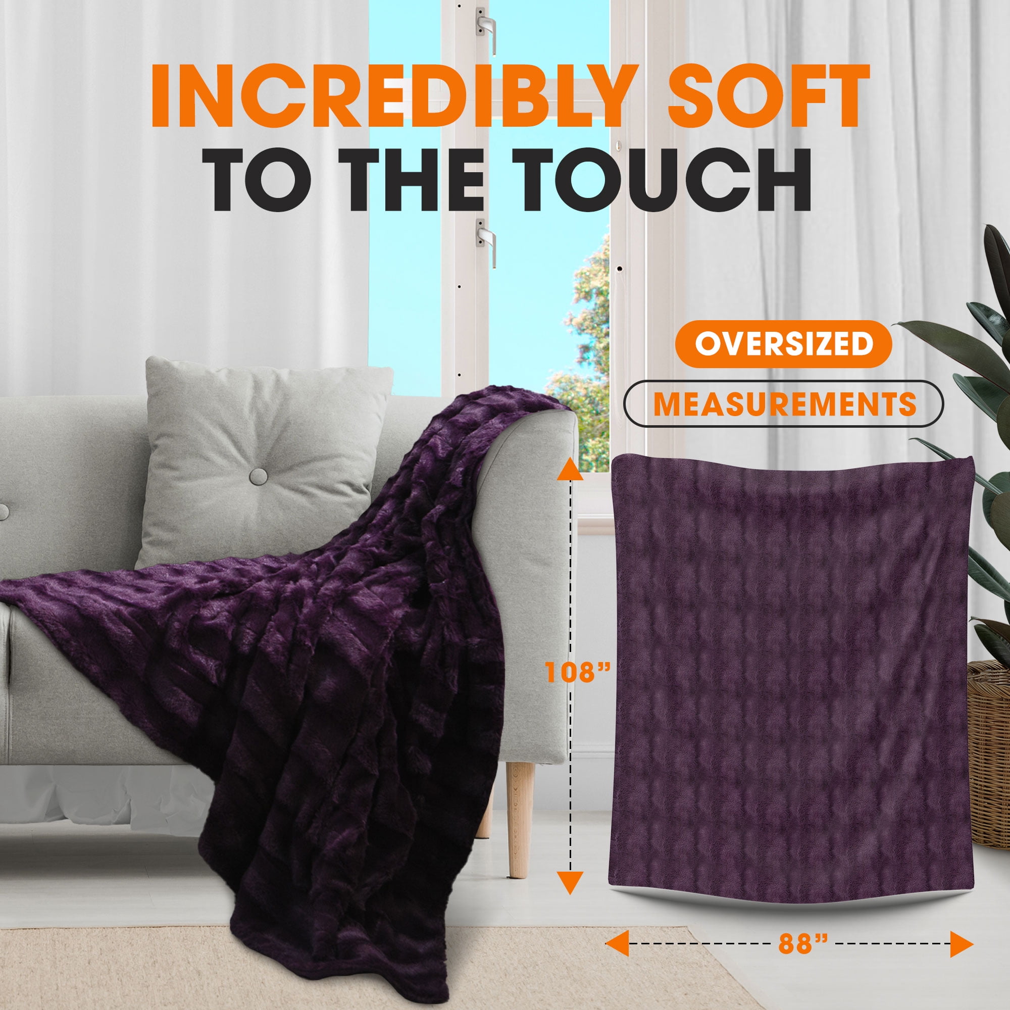 Cheer Collection Faux Fur Throw Blanket 108″ x 88″, Purple