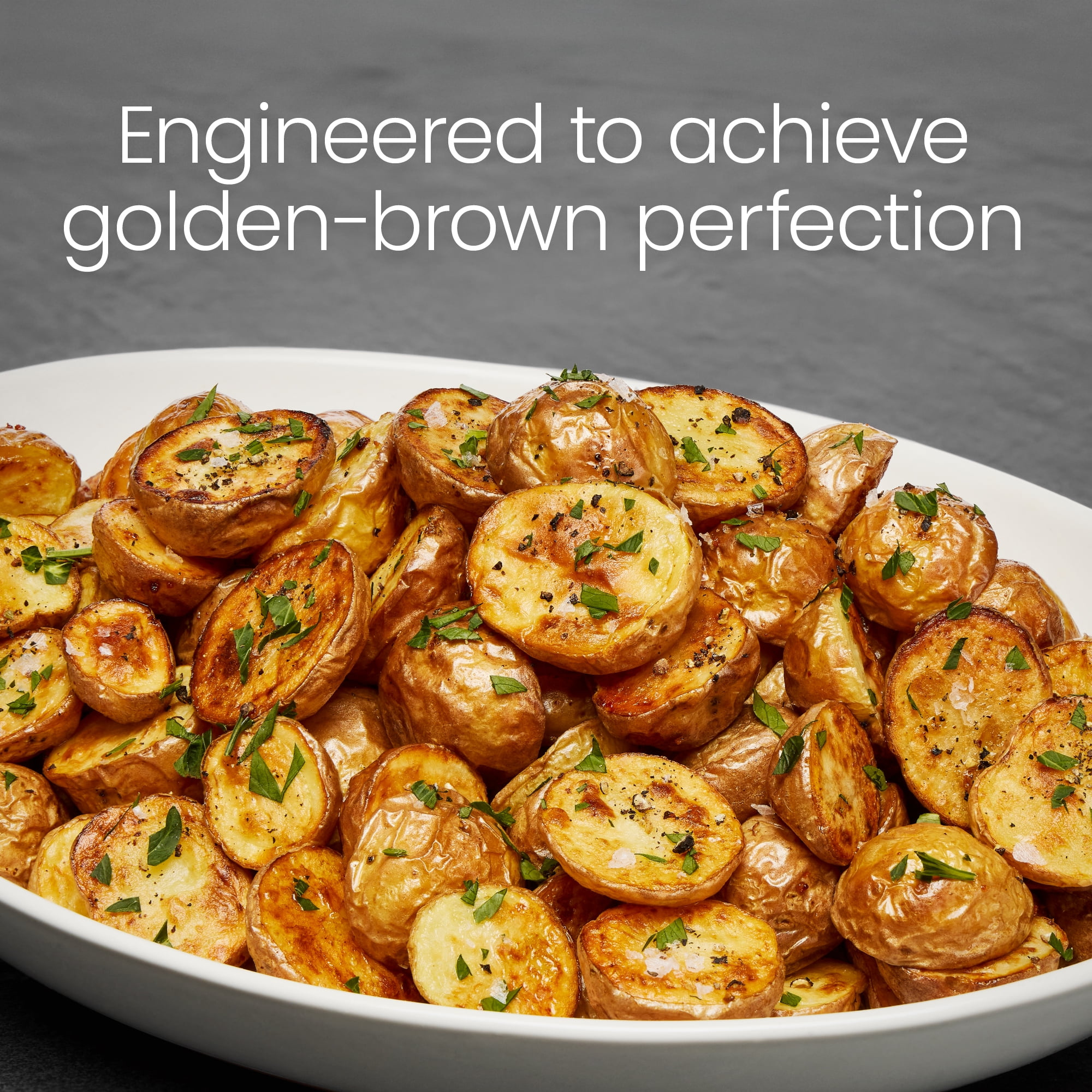 THE NEXT EVOLUTION OF AIRFRYERS: Experience big crisp like never before with the Chefman Crispinator, a countertop airfryer designed to produce deep fryer flavor without the added calories or the oily mess. UNSTOPPABLE FRYING POWER: With a high-powered DC motor, the Crispinator reaches an incredible 450°F for nonstop convection cooking. With improved heating times and whisper-quiet performance, this Chefman air fryer cooks faster than ever! SIX COOKING FUNCTIONS: This 8-quart air fryer does more than just convection cooking. With six functions to choose from, the Crispinator also works as a broiler, dehydrator, keeps your food warm, or even bakes like a traditional oven. UNIQUE CONTROLS: The top of the convection oven features innovative dial controls to set your cooking time and temperature with ease. The sleek UI has built-in LED shake/flip notifications that trigger halfway through cooking for evenly crisped chicken and fries. 8-QUART CAPACITY: The large air fryer basket is designed to fit the maximum amount of food possible, with a horizontal low-profile design so that you can fill the basket and still have it rest in one layer. BUILT-IN VIEWING WINDOW: Keep an eye on the fries and watch them crisp up to a perfect golden brown. This window air fryer lets you monitor your cooking without having to open the basket. KEEP IT CLEAN: The easy clean air fryer interior is nonstick, so you don’t have to worry about scraping up any stuck-on food. Plus, it’s top-rack dishwasher safe to make doing the dishes as simple as possible. FUNCTIONAL ART: Aesthetically beautiful and acknowledged as a 2024 Red Dot Design Award Winner, the Chefman Crispinator is engineered to work hard while still looking stylish and timeless.