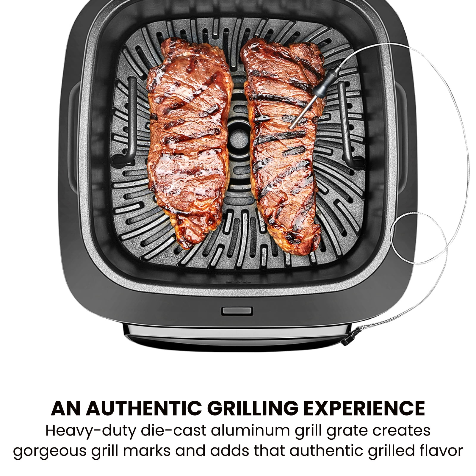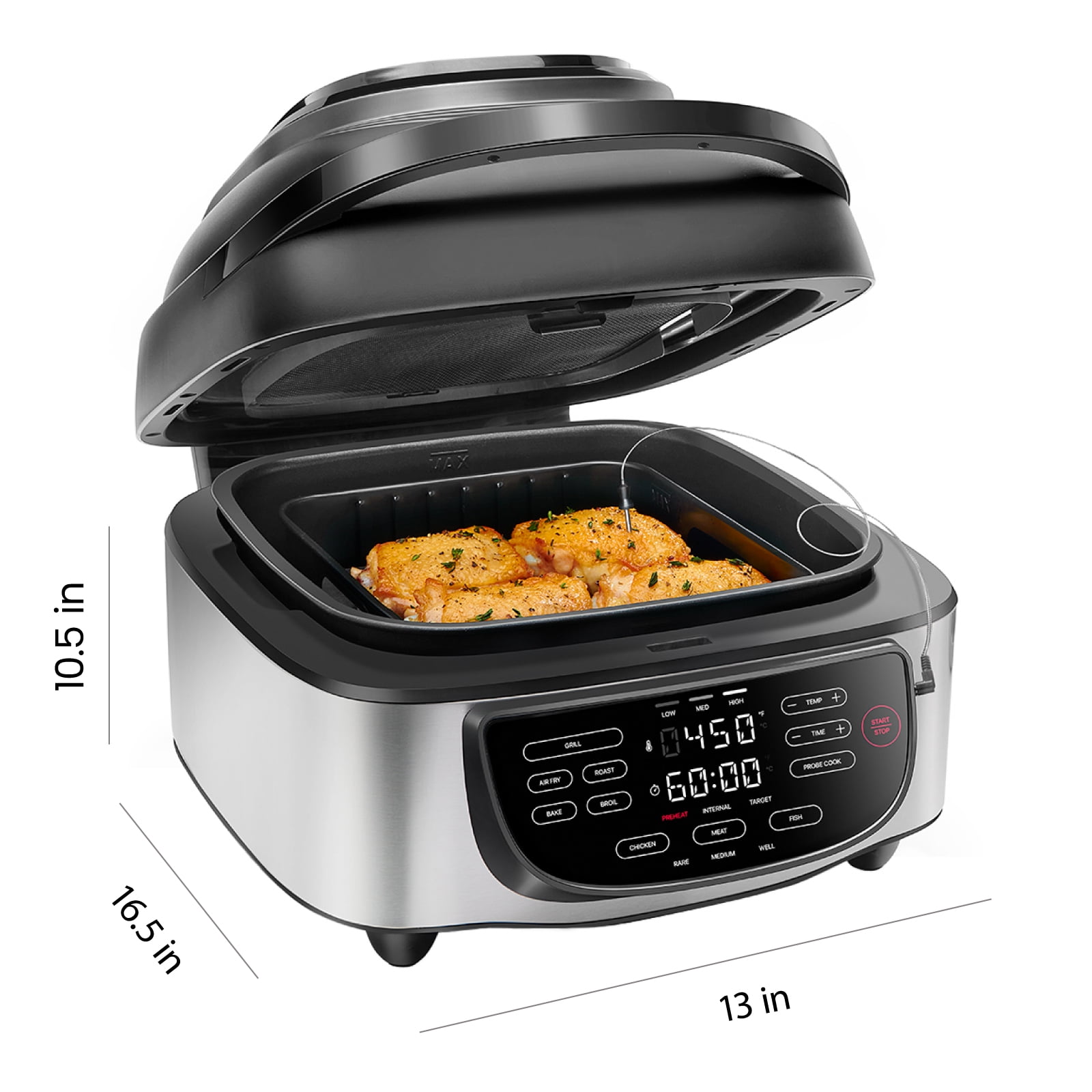 Chefman Electric Indoor Air Fryer + Grill, 5-in-1, Removable Integrated Probe Thermometer