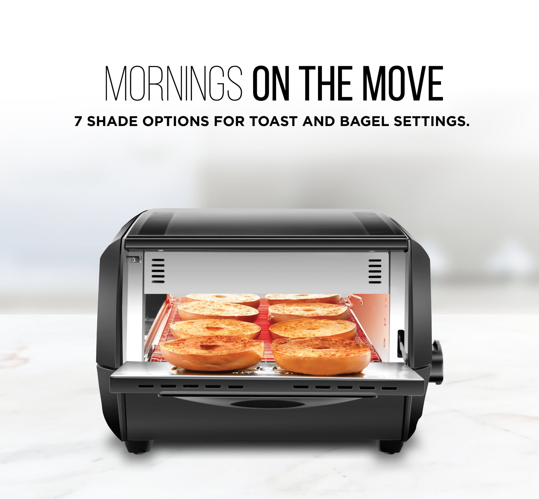 Toast, bake, broil and more like never before with the electric Chefman Food Mover Conveyor Toaster oven. With a state-of-the-art moving belt and infrared and halogen heating technology, you can have food for the family or breakfast for one ready in minutes. Watch your bread toast through the extra-large viewing window as it moves across the cooking belt and control your cooking with the advanced and easy-to-use digital display. When you select your desired preset, the Food Mover will let you know the recommended time, temperature or conveyer speed and will alert you whether to keep the side doors open or closed. Use the 6 built-in cooking presets for every kitchen countertop cooking need: Toast, Bagel, Bake, Broil, Pizza and DIY. In Toast or Bagel mode, you can select one of 7 shade settings. With the DIY button, you can customize your cooking and let the high-power conveyer belt run until the desired doneness. Cook better breakfast, lunch, dinner and dessert for the whole family with the large interior capacity. The oven fits up to a 10-inch pizza or a 9 x 13-inch baking and roasting pan. The Food Mover includes a bonus cooking pan, cooking rack and crumb tray that are all top-rack dishwasher-safe for easy cleanup. The Food Mover is the perfect countertop cooking solution for any household! cETL approved with advanced safety technology for long-lasting durability & 1-year assurance provided by Chefman, so you can purchase worry-free – we’ve got your back! 1800 Watts/120 Volts – RJ25-C NEW