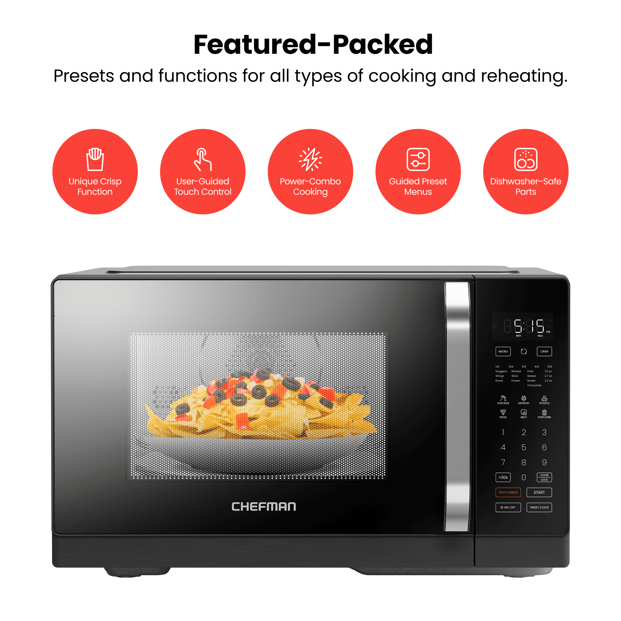 Chefman MicroCrisp 0.8 cu. ft. Countertop Microwave Oven + Crisper, 1800 Watts – Black