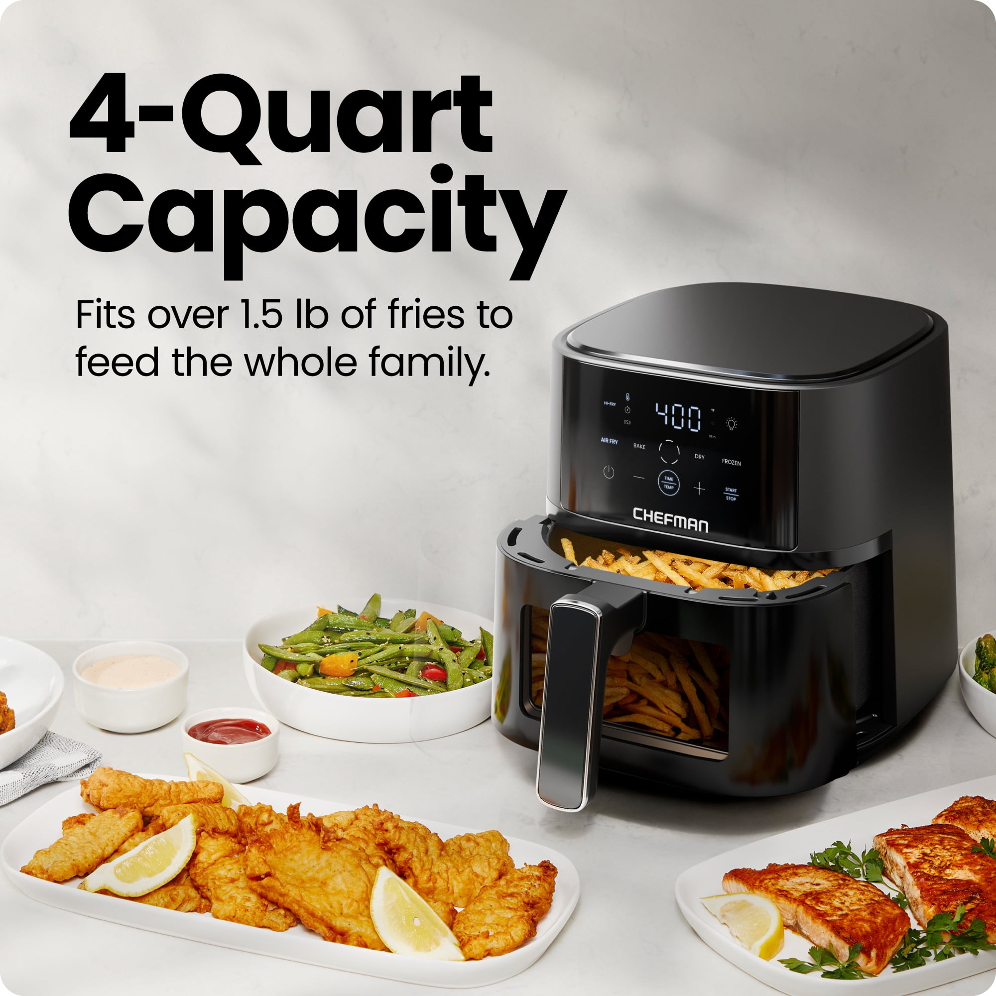 Chefman TurboFry Touch 4-Qt Easy-View Air Fryer w/ 4 Cooking Presets and 450F Hi-Fry Button – Black