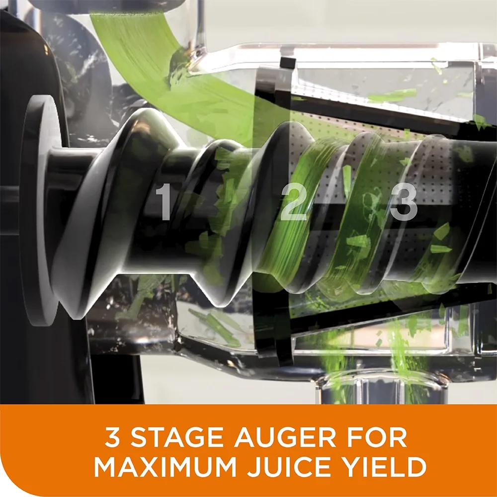 COLD PRESS TECHNOLOGY – Achieve your healthy lifestyle goals with cold press juicing technology that eliminates heat and exposure to air for the maximum vitamin and mineral nutritional value in each glass THREE-STAGE AUGER SLOW MASTICATING JUICING – The Chef’sChoice Masticating Juicer uses a 3-stage auger which squeezes foods to extract every bit of juice for greater yield and higher quality juice with less foam TOUCHPAD CONTROLS – Just a quick push of a button and you are ready to start juicing EASY TO CLEAN – Just a quick rinse or pop into the dishwasher for effortless clean up REVERSE FUNCTION – The anti-clog reverse function prevents food build up to allow for continuous use LESS NOISE – Quieter operation compared to high speed juicers FOR FRUITS, VEGGIES AND ALL TYPES OF GREENS – Ideal for making homemade, delicious, and healthy juices from fruits, vegetables and all leafy greens