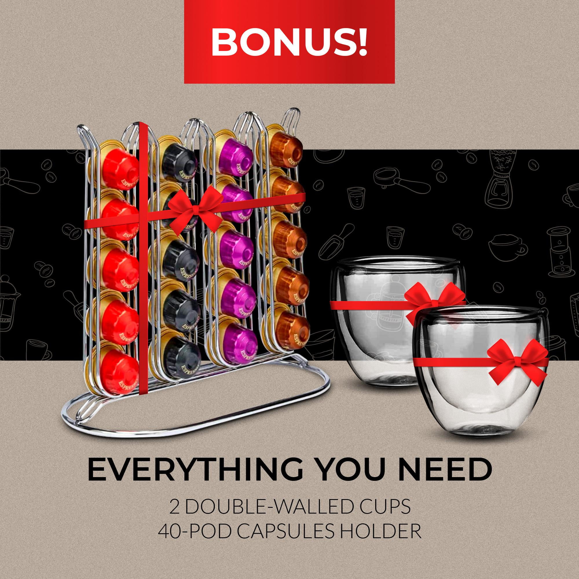 Barista-Style Italian Capsule Espresso Machine: Features high quality Italian 20 bar pressure pump. Brew rich, flavorful, consistent and delicious cup of coffee at a touch of a button. 2 programmable brew sizes: Espresso (1.3 oz) or Lungo (3.75 oz). Easy convenient clean up: After brewing, the capsule is automatically ejected and stored. Capsule container, drip tray and water tank are easy to remove and are dishwasher safe. Compatible with Nespresso Original Line Capsules: Designed for use with the Original Line Nespresso capsules or any other branded capsules. The Kava is equipped with a fast heat-up system that reaches the ideal temperature in under 30 seconds! Compact and Energy-saving : Lightweight, mini, instant pod coffee machine, takes up very little room on the countertop. Machine will turn off to save energy with the automatic 2-hour shut off and standby mode. 1-Year Chefwave Warranty: We want to ensure that you’re satisfied with our products. Money back guarantee. This warranty covers parts and labor so that you can enjoy using it worry-free! ETL Certified.