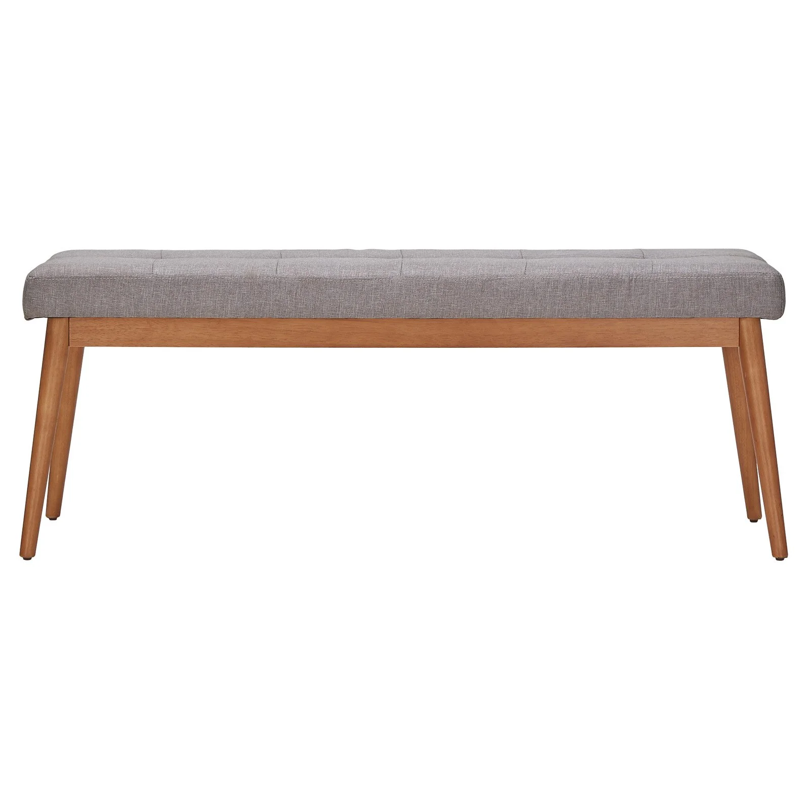Reflecting the elegant simplicity of the mid-century modern age, the Chelsea Lane Tufted Bench will add a touch of retro appeal to your dining area. The bench rests on sturdy, angled wood legs and shows off a clean, sleek light oak finish. High-density foam fill pads the seat for comfort. Textured like linen, the microfiber upholstery elevates the design but allows for easy care. Button tufting puts a sophisticated finishing touch on the design.