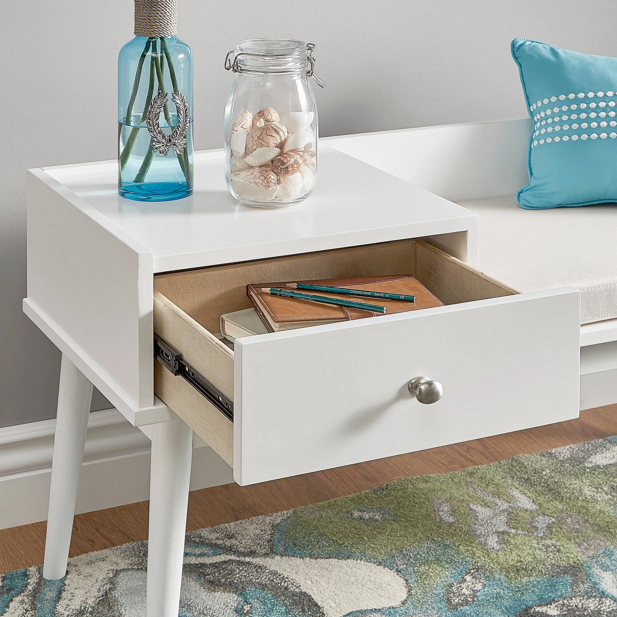 Chelsea Lane Ethan Wood Bench with 1 Drawer, White