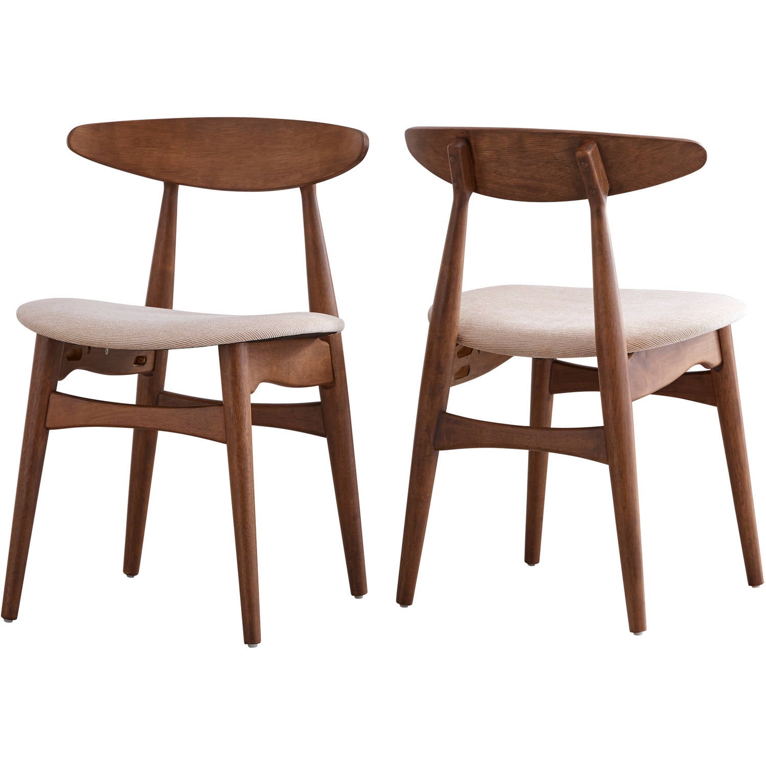 Chelsea Lane Mid Century Modern Beige Upholstered Wood Dining Room Side Chairs, Set of 2, Walnut Finish
