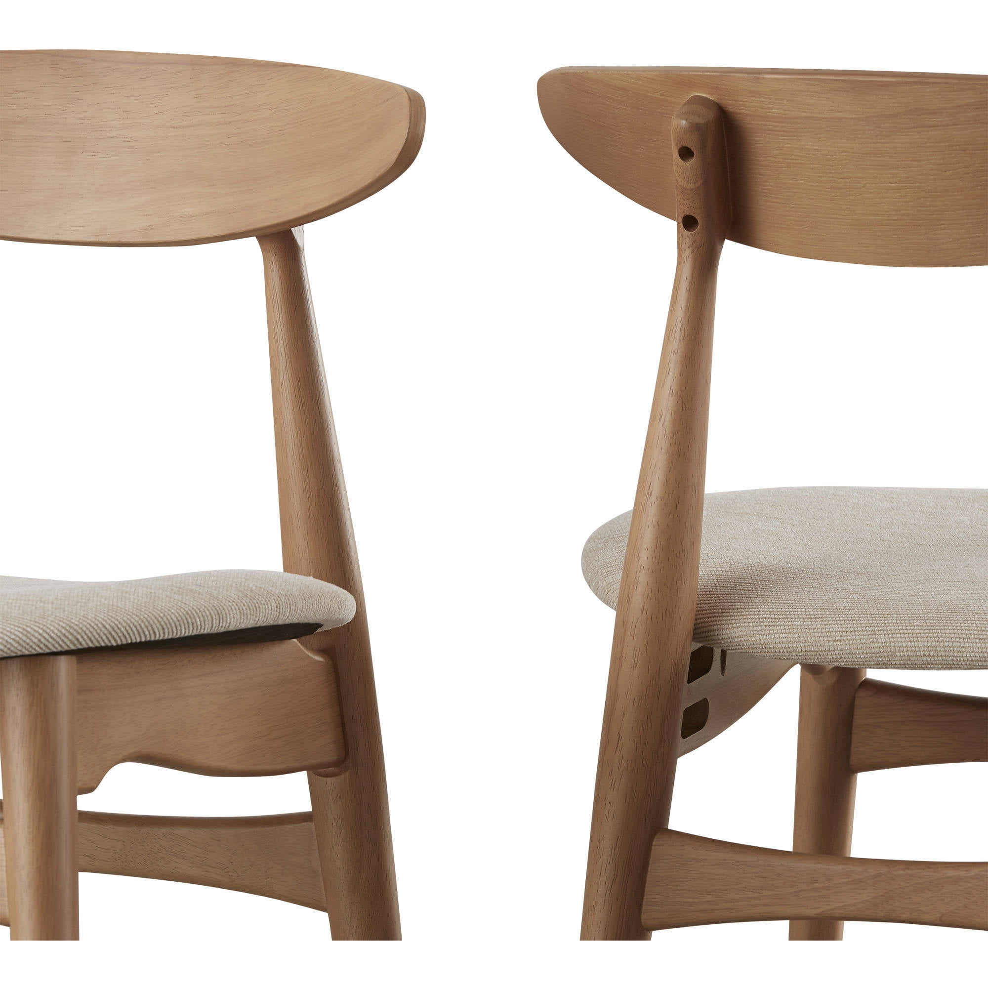 Chelsea Lane Mid Century Modern Beige Fabric Side Chairs, Set of 2, Ash: Set of 2 dining chairs Made of rubberwood and venee Beige fabric seat Foam fill 44 pound foam density Seat height: 18.5″ Seat thickness: 0.79″ Chair (overall): 19.9″ wide x 17.32″ deep x 29.33″ high Assembly Required