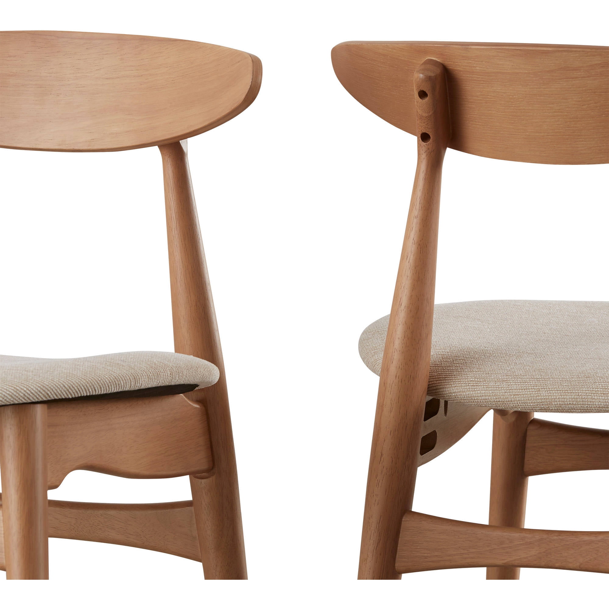 Chelsea Lane Mid Century Modern Beige Upholstered Wood Side Chairs, Set of 2, Walnut Finish