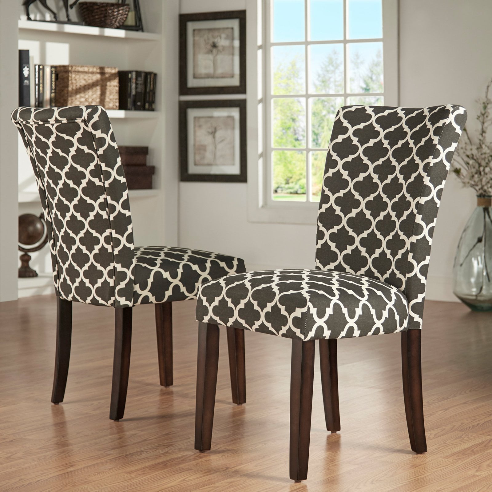 Chelsea Lane Pattern Upholstered Espresso Parson Dining Chairs, Set of 2, Black