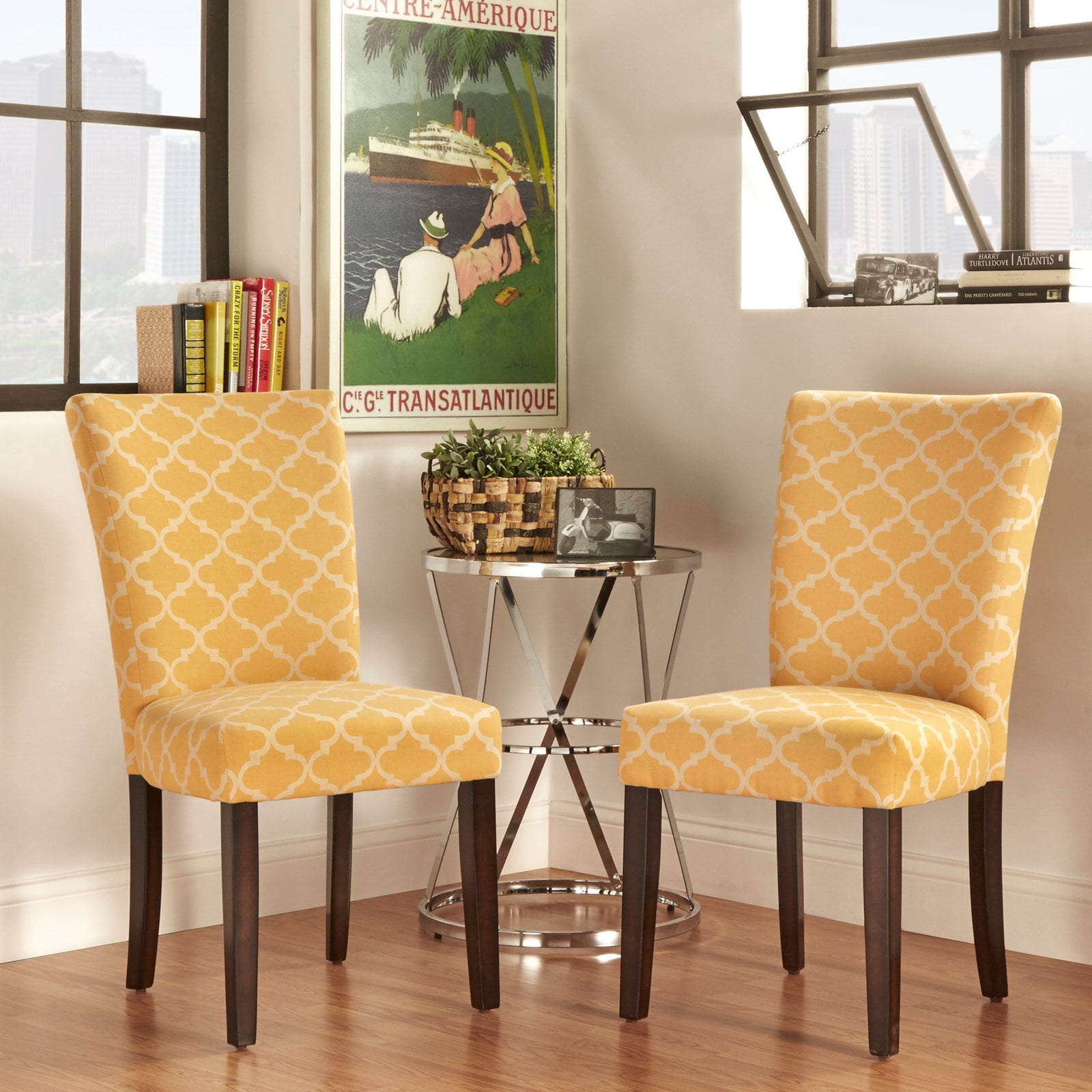 Give your dining or seating area a touch of global elegance, compliments of the Chelsea Lane Espresso Parson Chair – Set of 2. The luxuriously soft chenille upholstery features a quatrefoil lattice inspired by Moroccan tile work. Crafted out of wood, the Parsons chairs can provide years of use in the dining room, kitchen, or living room. Wherever you use them, the spring-supported, foam-padded seats will ensure your comfort.