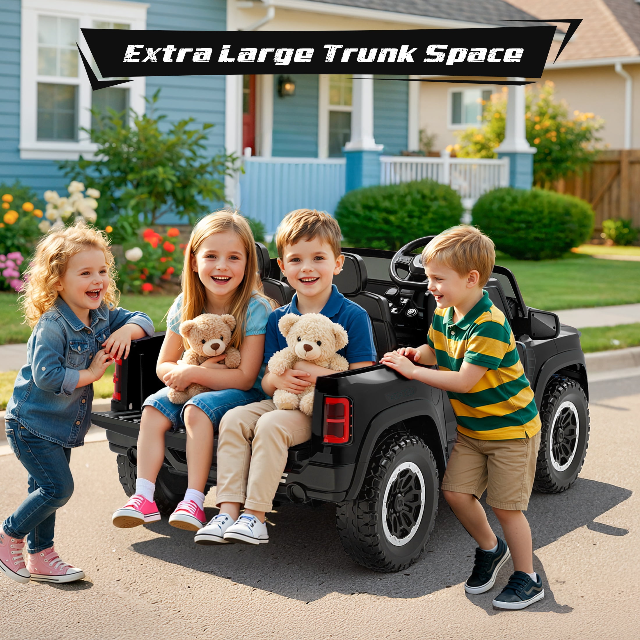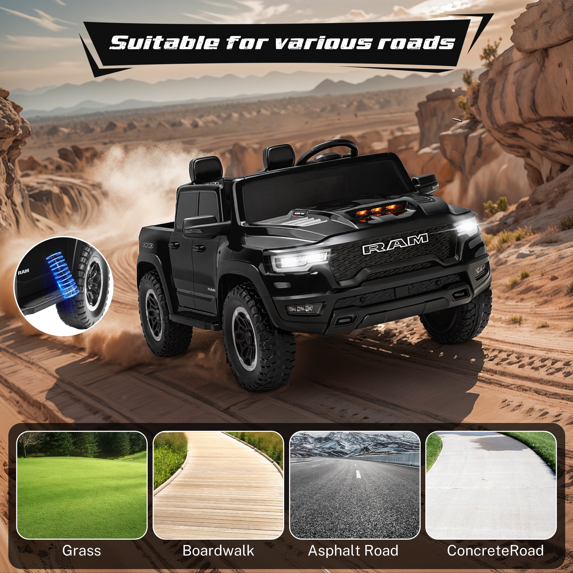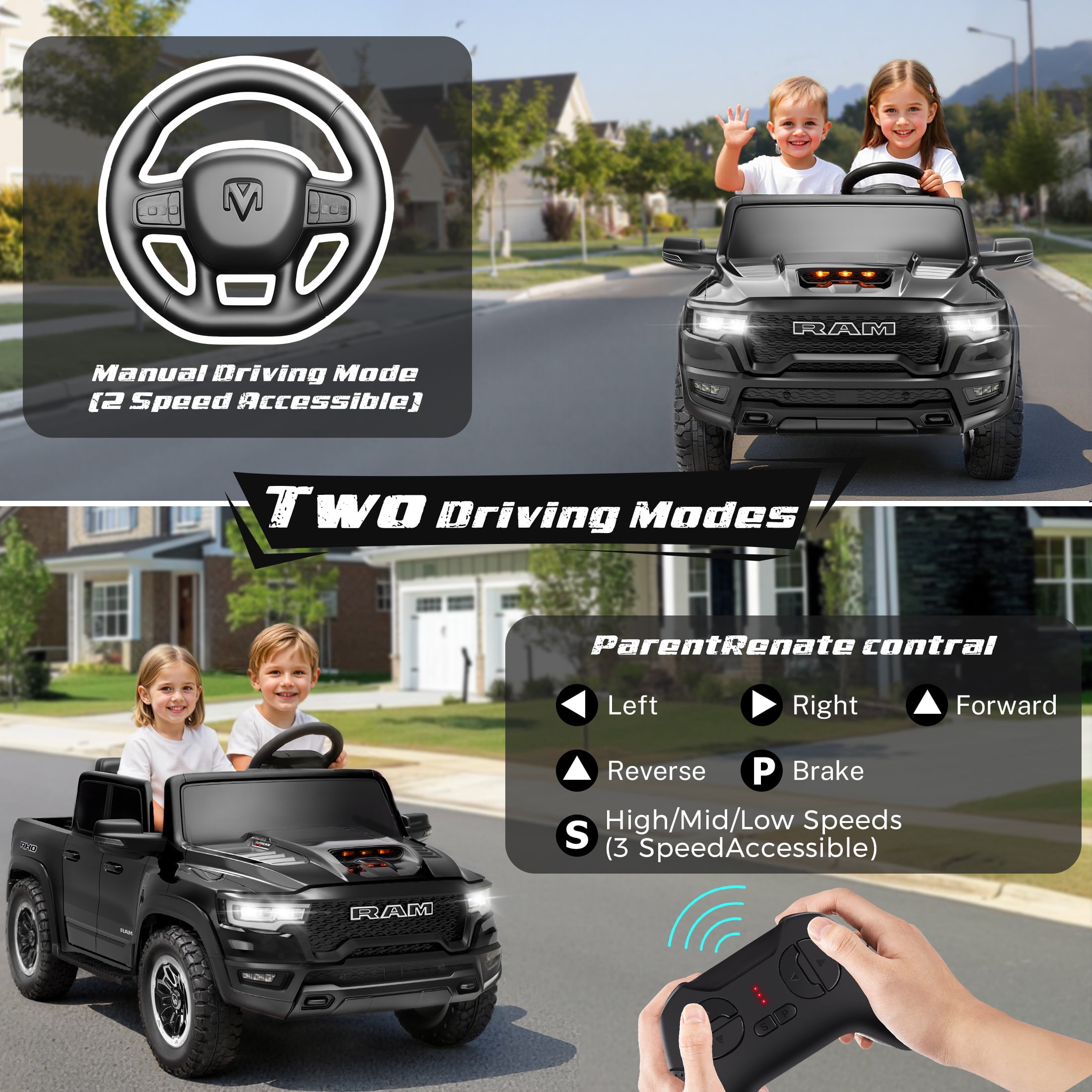 RAM 24V Ride on Cars for Tow Kids, RAM 1500 RHO 2 Seat Battery Powered Ride on Toys with Remote Control, 4 Wheels Suspension Trunk, LED Light, MP3 Player, Electric Car for Kids Boy Girl Gift, Black