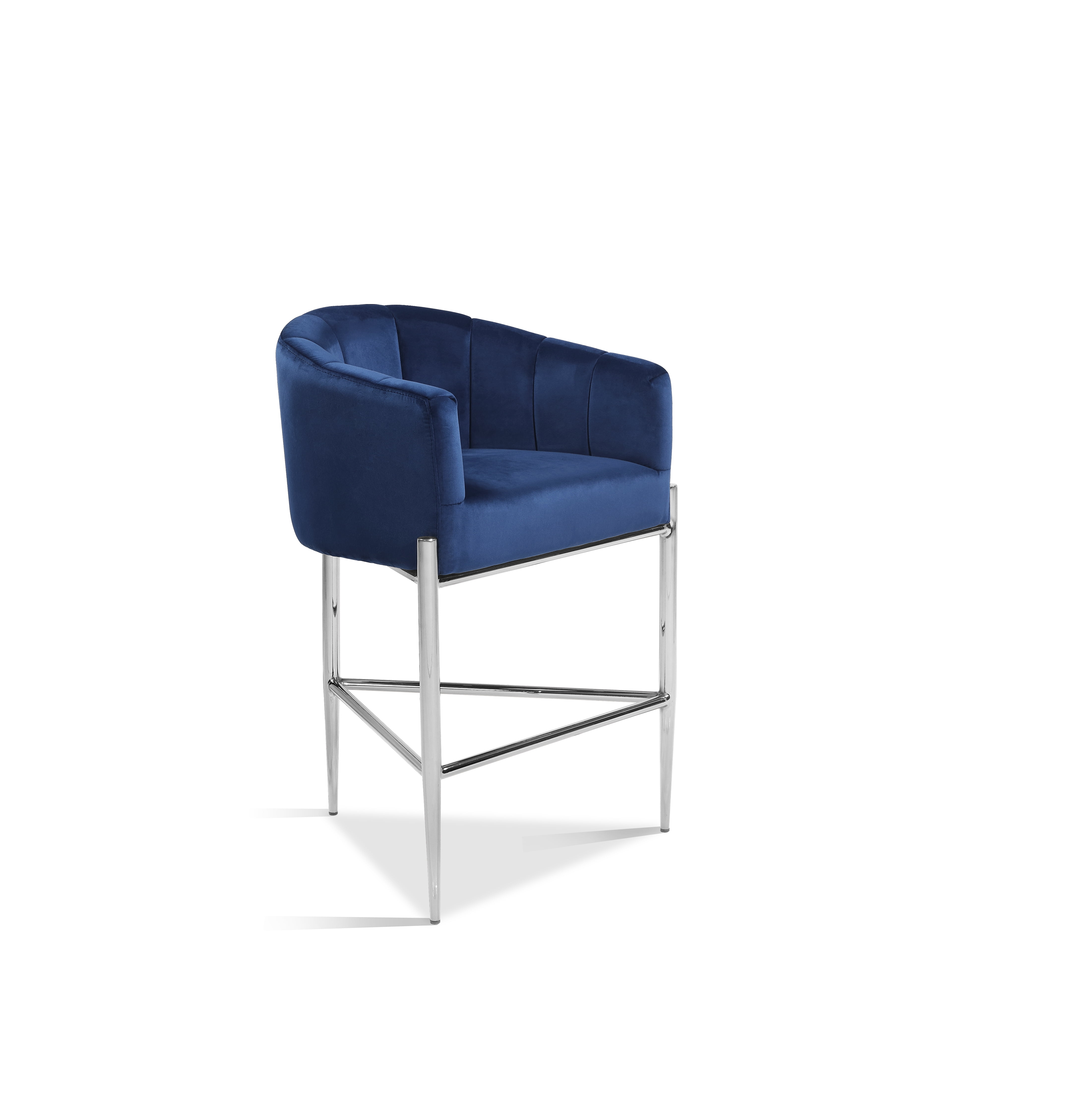 Chic Home Ivah Counter Stool Velvet Upholstered Chrome Tone Base, Navy
