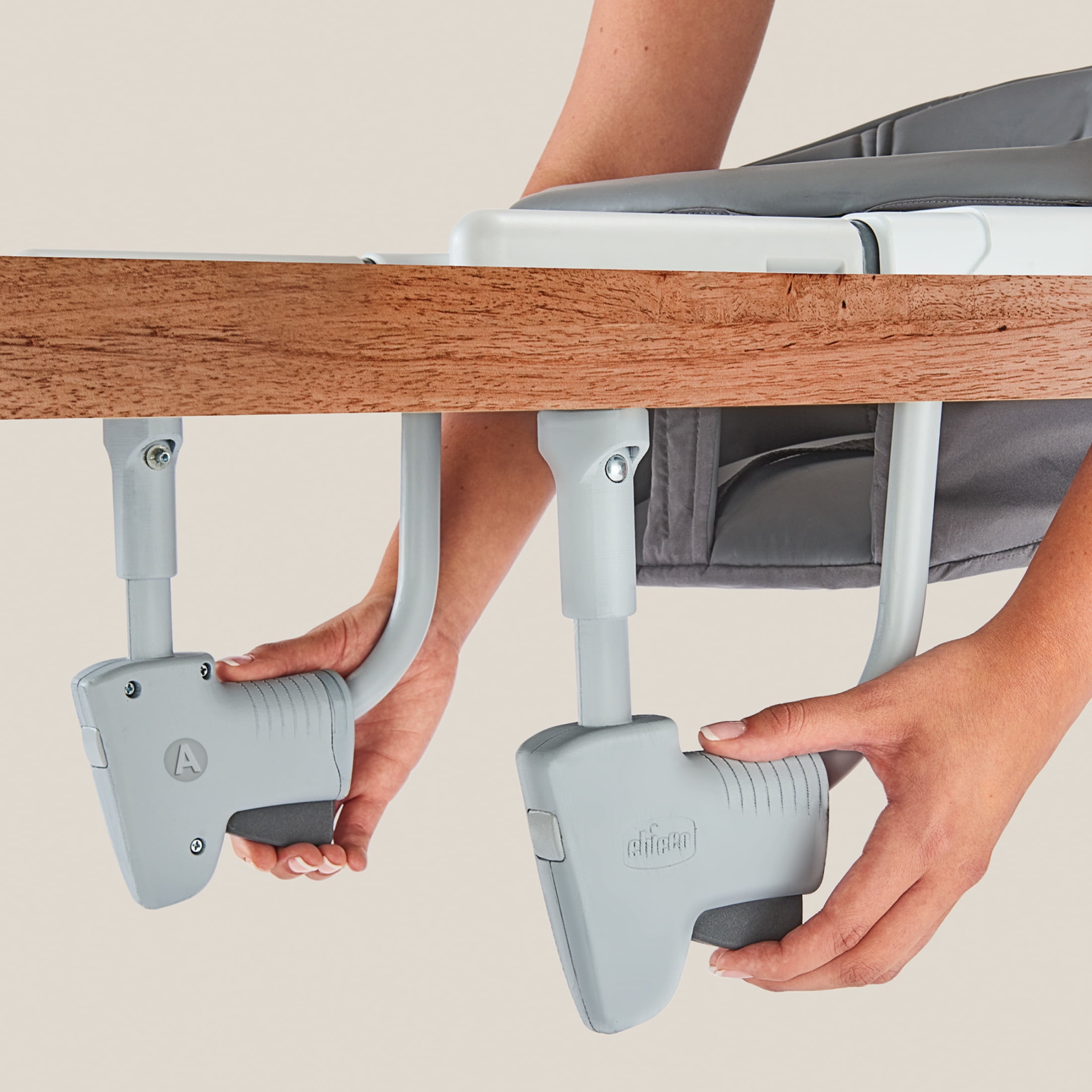 Quick to Set Up, Easy to Take Along The most versatile hook-on chair from Chicco, FastLock® 360 fully rotates to accommodate the needs of baby any time of day. Turn the chair to the side for face-to-face feeding, forward for a place at the table, or toward the back to keep baby in the center of the action. Featuring quick and secure set up, the innovative FastLock® clamps attach in seconds with a reassuringly tight grip. The rubberized feet enhance the grip and protect the table from scratches and scuff marks. FastLock® 360 conveniently fastens to surfaces .75″ – 1.5″ thick and navigates a table skirt up to 5.25”. Easy to Clean A dishwasher-safe, snap-on tray (included) and soft, wipeable seat keep messes contained and cleanup easy. The seat can also be removed quickly from the frame to shake out crumbs. Ready to Go When You Are Whether it’s a trip to the grandparents or your favorite restaurant, the seat folds flat so it’s easy to stow and go.