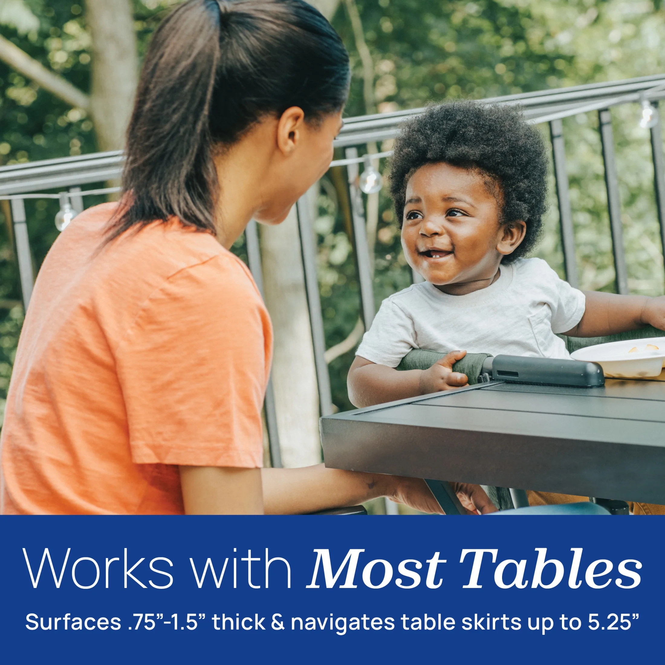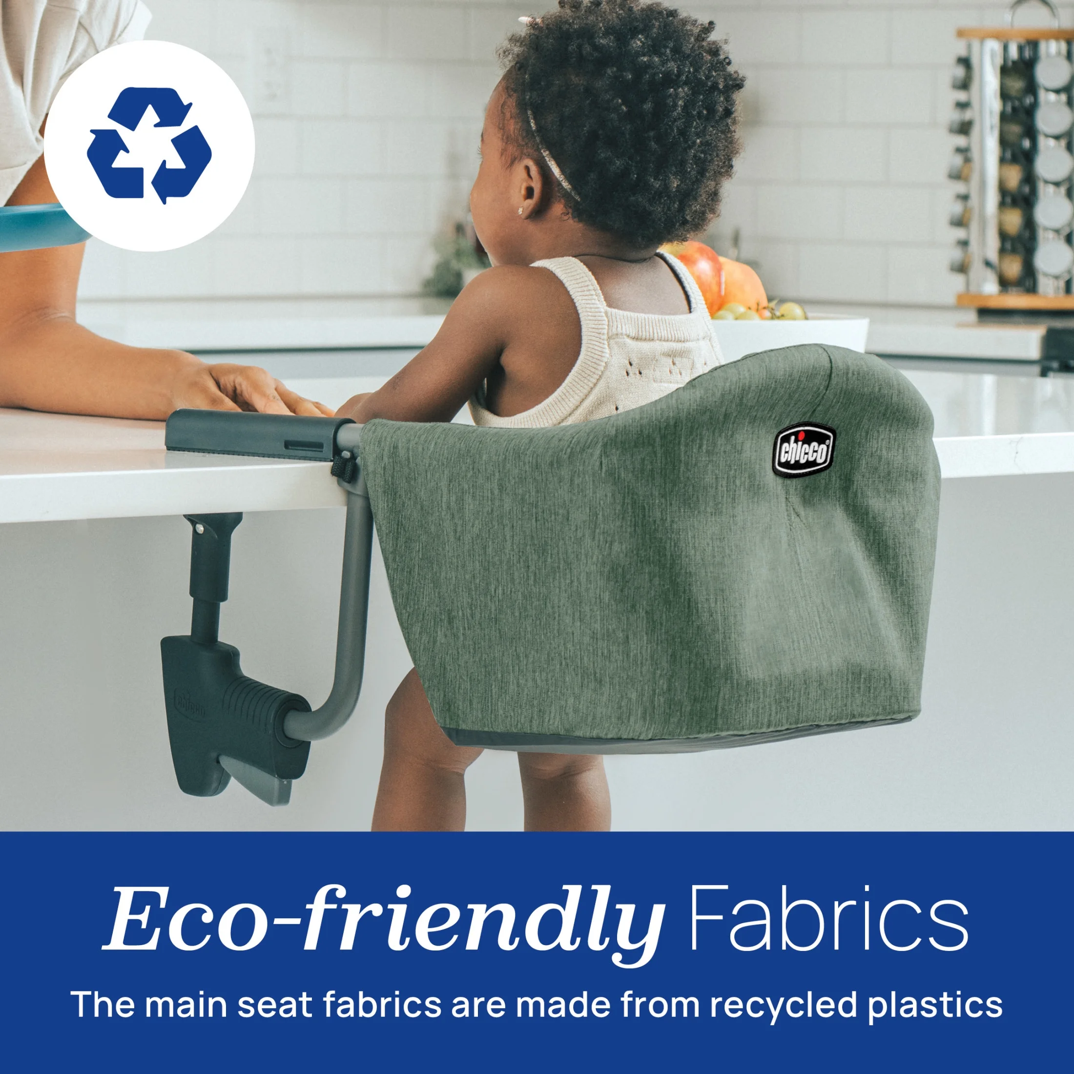 FastLock® clamps ensure a tight and secure fit to table in seconds Rubberized feet enhance grip and protect table from scratches or scuffing Featuring eco-friendly fabric made from recycled plastics Soft-grip arms firmly clamp onto the top of the table without scratching Compatible with most tables and navigates table skirts up to 5.25” thick Removeable seat pad is wipeable and machine washable Space-saving seating takes up less room than a traditional highchair Folds compactly for easy storage or meals away from home The Moss fashion features a durable ripstop fabric in an earthy olive green hue.