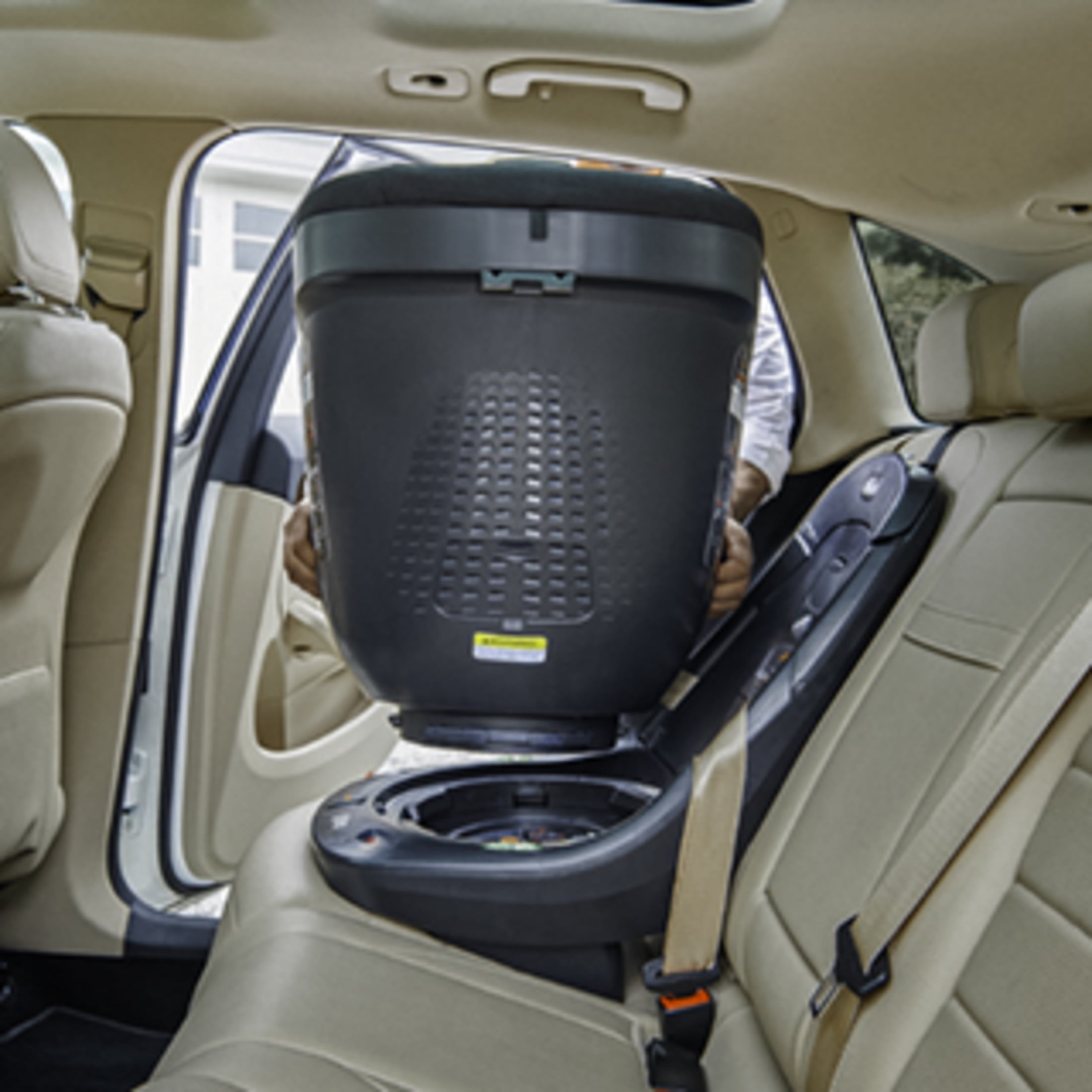 Convenience multiplied! Purchase an additional base for your Fit360® Rotating Convertible Car Seat (sold separately). With secure, one-time installation, the second base can be used in another vehicle allowing you to move the Fit360® seat from base-to-base. Installing the Fit360® base into your vehicle is as simple as open-route-close with innovative one-time LeverLock® seat belt installation. Open the LeverLock® door on the Fit360® base and route the seat belt using the easy-access belt guides. The car’s shoulder and lap belts follow their natural path through the guides for trouble-free belt routing. The built-in LeverLock® self-tensioning lock system offers superior stability with three points of contact for continuous use from rear-facing through forward-facing usage. By simply closing and latching the LeverLock® door, the vehicle belt is tightened in a way that eliminates any movement from front-to-back or side-to-side. This provides a secure installation with minimal effort, ensuring reliable stability over time. Top tether can be used in both rear-facing and forward-facing travel. The Fit360® base offers two RideRight™ level indicators and a 6-position ReclineSure™ leveling system making installation a breeze and providing a secure fit in your vehicle and a proper seated angle for your child’s comfort. The six recline positions allow you to select the ideal seating angle for your child during installation that will provide peace of mind throughout the duration of use. Once the base is installed in your vehicle, insert the seat into the base, secure your child and rotate into a ready-to-ride position. The visual red and green ready-to-ride indicators assure the Fit360® is installed securely in your vehicle and is in either a rear-facing or forward-facing ready-to-ride position.