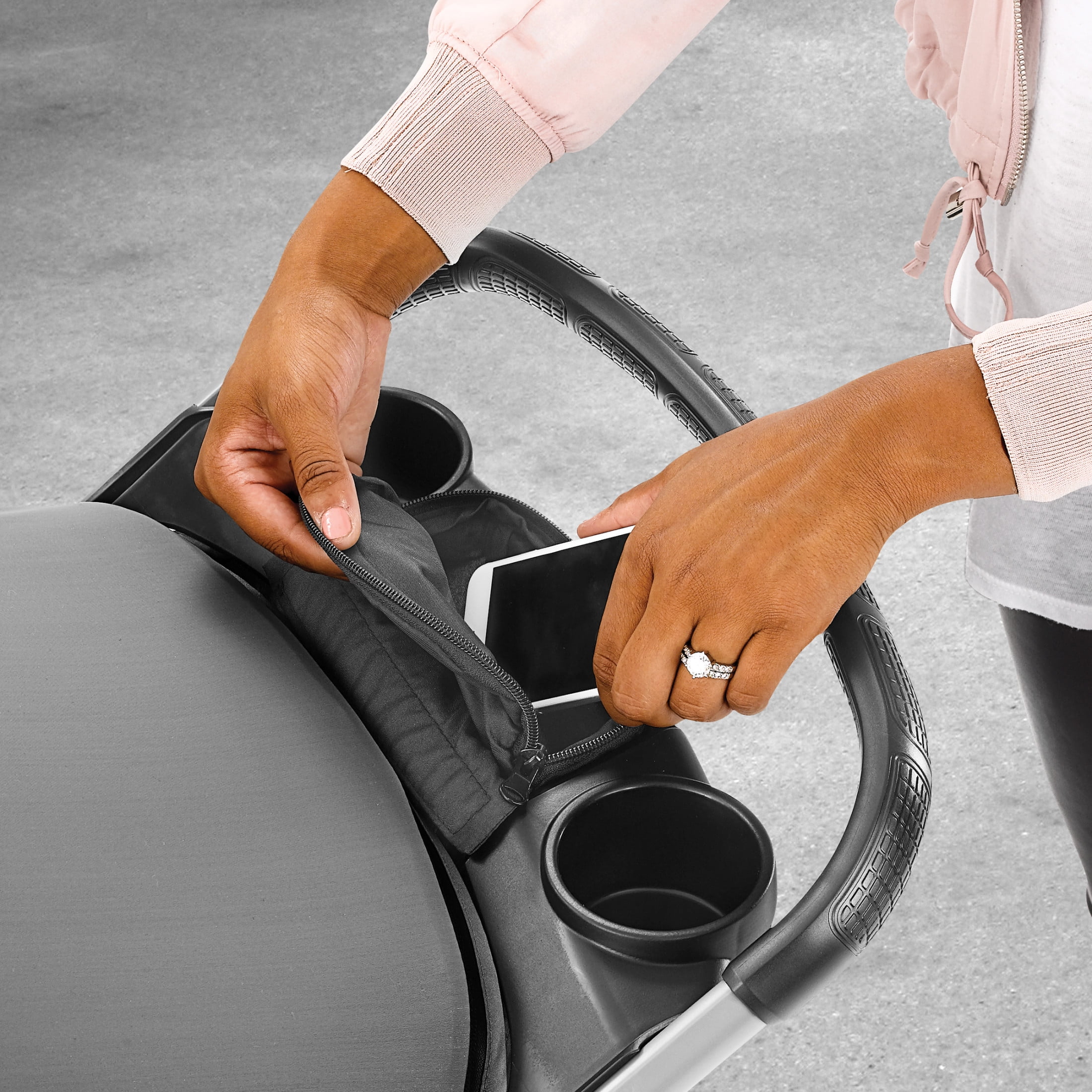 Lightweight and compact for on-the-go convenience Accepts all Chicco infant car seats with secure, click-in attachment Innovative fold/carry handle for a one-hand, free-standing quick fold Detachable child tray folds down for compact storage 3-position reclining backrest with easy one-hand adjustment Adjustable UPF 50+ canopy with mesh extension panel Easy-grip handle and parent tray with two cup holders Sleek front swivel wheels for smooth turns and precise maneuverability Large storage basket for on-the-go essentials Toe-tap locking rear brakes for parking Channeling the athleisure trend, Graphite features a smooth and sleek knit in charcoal grey.