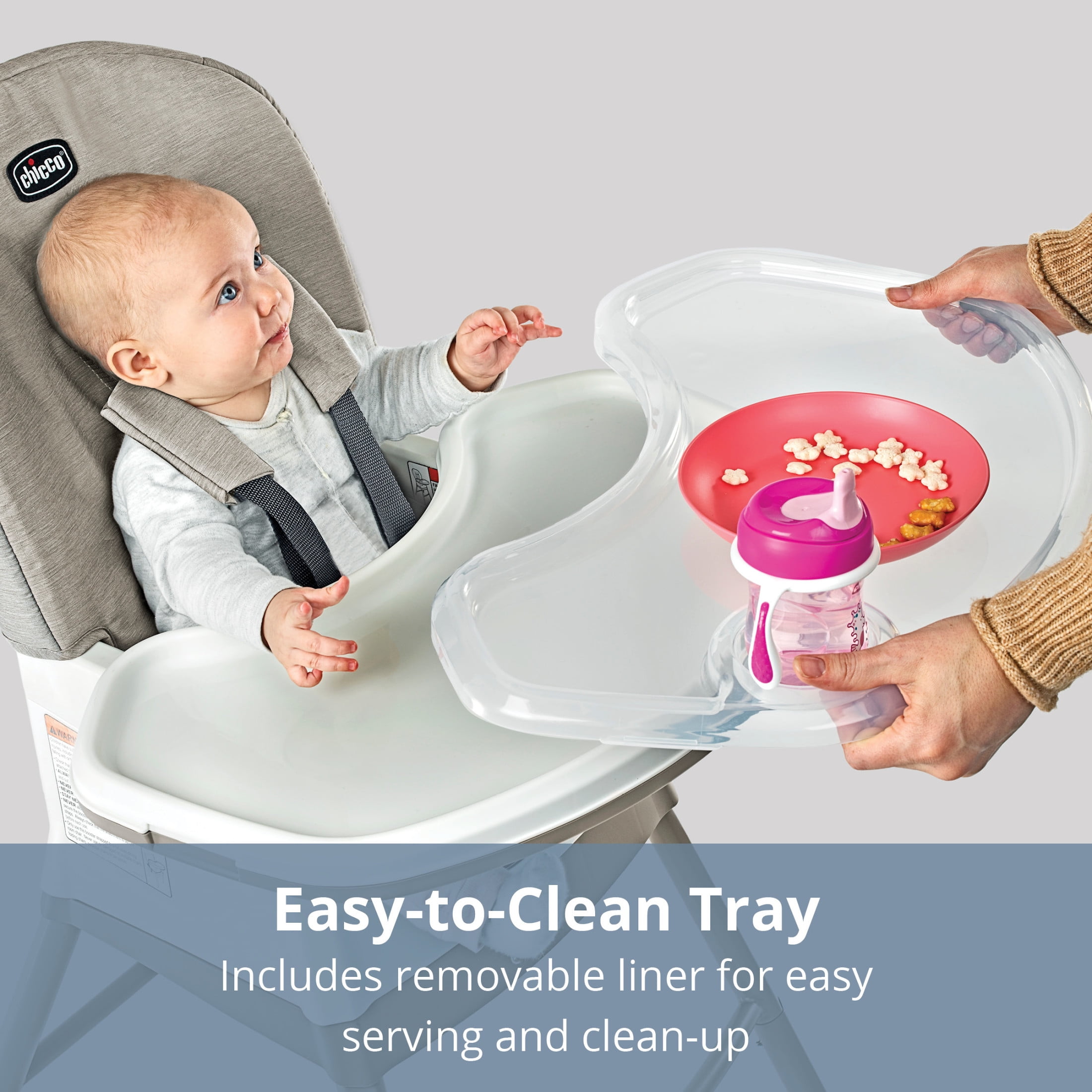 6-in-1 Multi-Use High Chair, Chair Booster, Youth Stool, Low Chair, Toddler Chair, Booster + Stool Combo Sturdy metal frame supports children up to 100 lbs. Padded, 5-point harness, three recline positions with one-hand adjustment Snap-on tray with liner attaches to back of chair when not in use Wipeable, machine-washable seat pad features fabric made from recycled plastics Removable leg extensions snap into the base of the frame for storage The Tide fashion features a durable ripstop fabric in a refreshing seafoam hue.