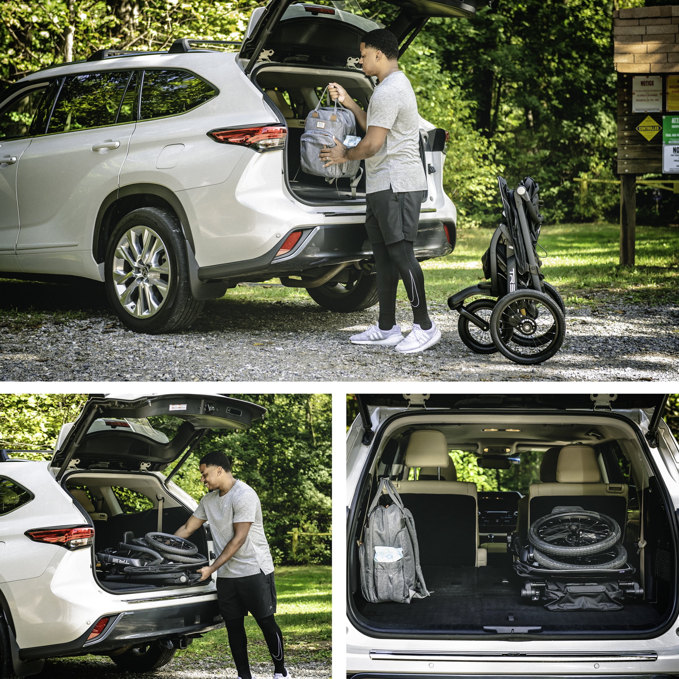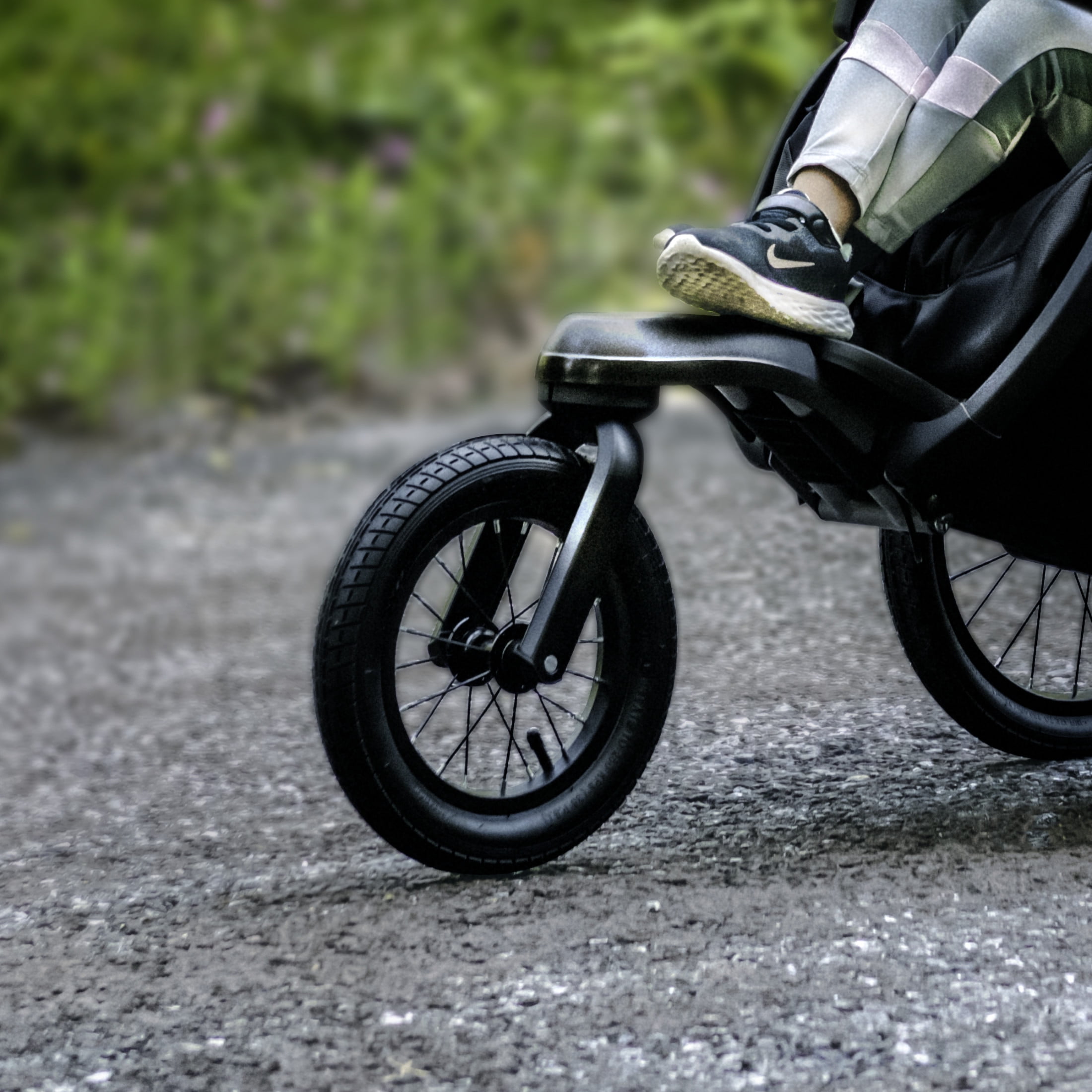 Multi-position reclining seat with full-coverage, UPF 50+ extendable canopy with two peek-a-boo windows and reflective detail. Detachable padded arm bar for easy in and out as child grows. Secure, click-in attachment for all Chicco infant car seats (sold separately) via the included arm bar – no additional adapter needed. Exclusive Control Console includes hand-operated parking brake to keep foot area clear and unobstructed, hand-operated locking front swivel wheel for on-the-go adjustment and 4-position handle. Adjustable FlexCore® rear suspension adjusts for smooth or rugged terrains and air-filled tires allow for additional adjustment whether strolling or jogging. One-hand standing fold with 3 configurations and quick-release wheels for convenient portability and storage Front swivel wheel locks in either trailing or leading position for jogging The Galaxy fashion touts a black woven in a subtle reflective pixelated pattern for practical, yet unexpected style.