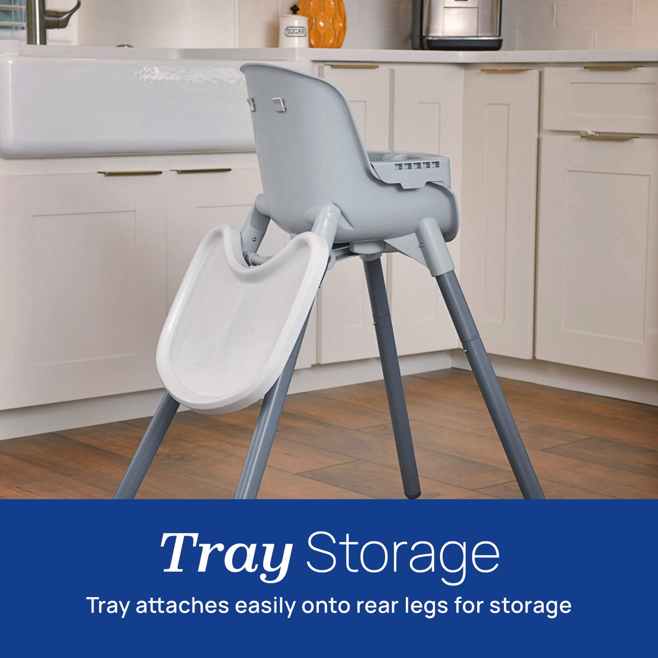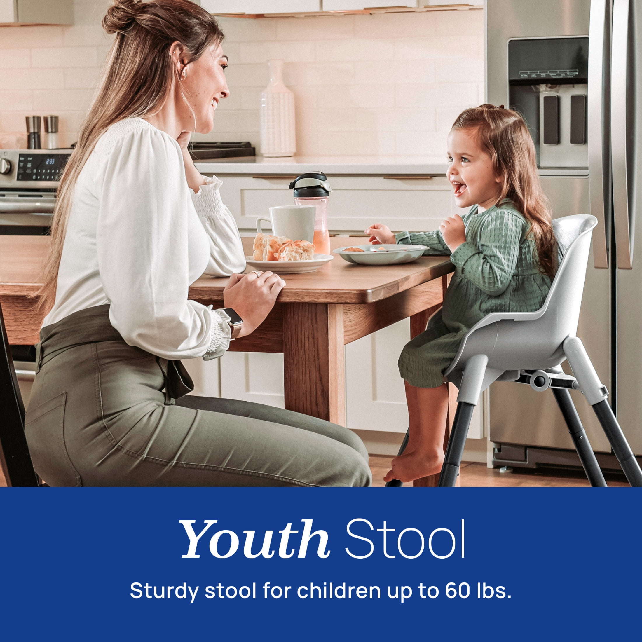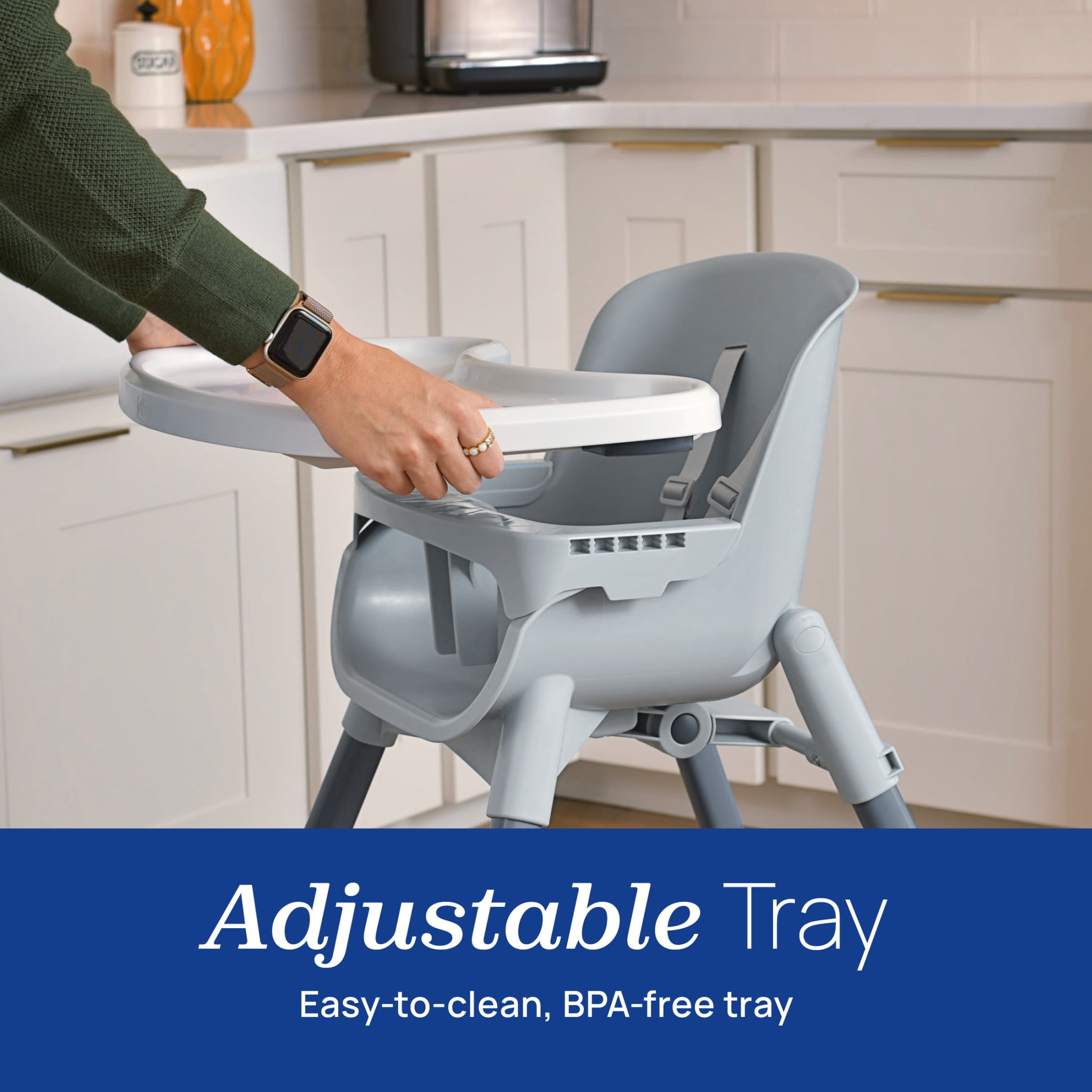 Zest™ 4-in-1 Multi-Use High Chair, Low Feeding Chair, Toddler Chair, Youth Stool; for extended use up to 60 lbs. Lightweight, compact high chair is easy to move around the kitchen and folds compactly with space-saving tray storage or rear legs Sleek, one-piece seat and BPA-free removable tray are easy to wipe clean Shorten the legs for a low feeding chair that can be used for stacking or playing with toys or remove the harness and tray for a toddler chair Remove the harness and tray to use as a sturdy stool for extended use with older children up to 60 lbs. The Seasalt fashion features a crisp combination of grey hues.