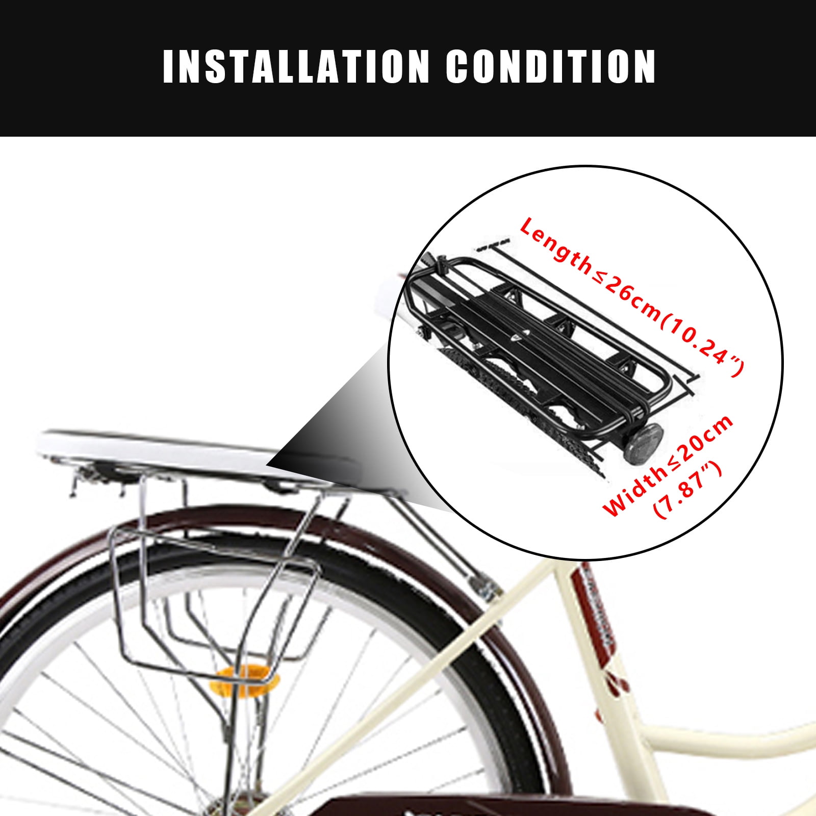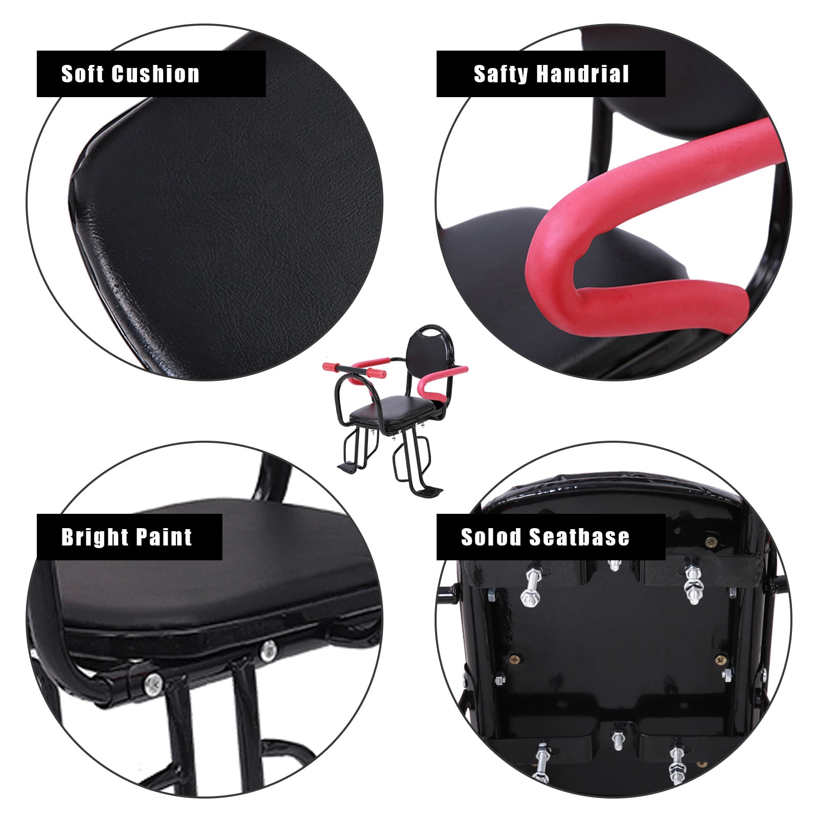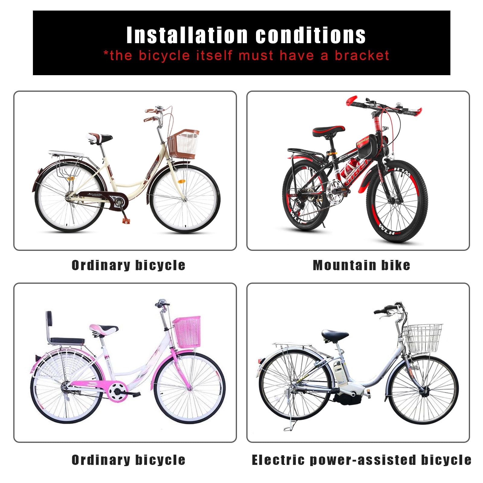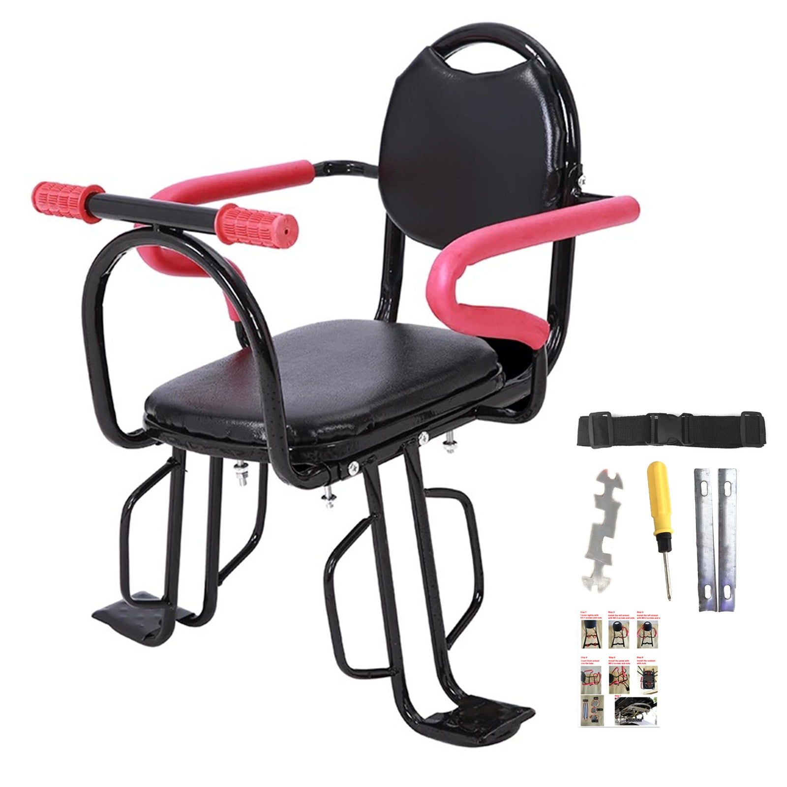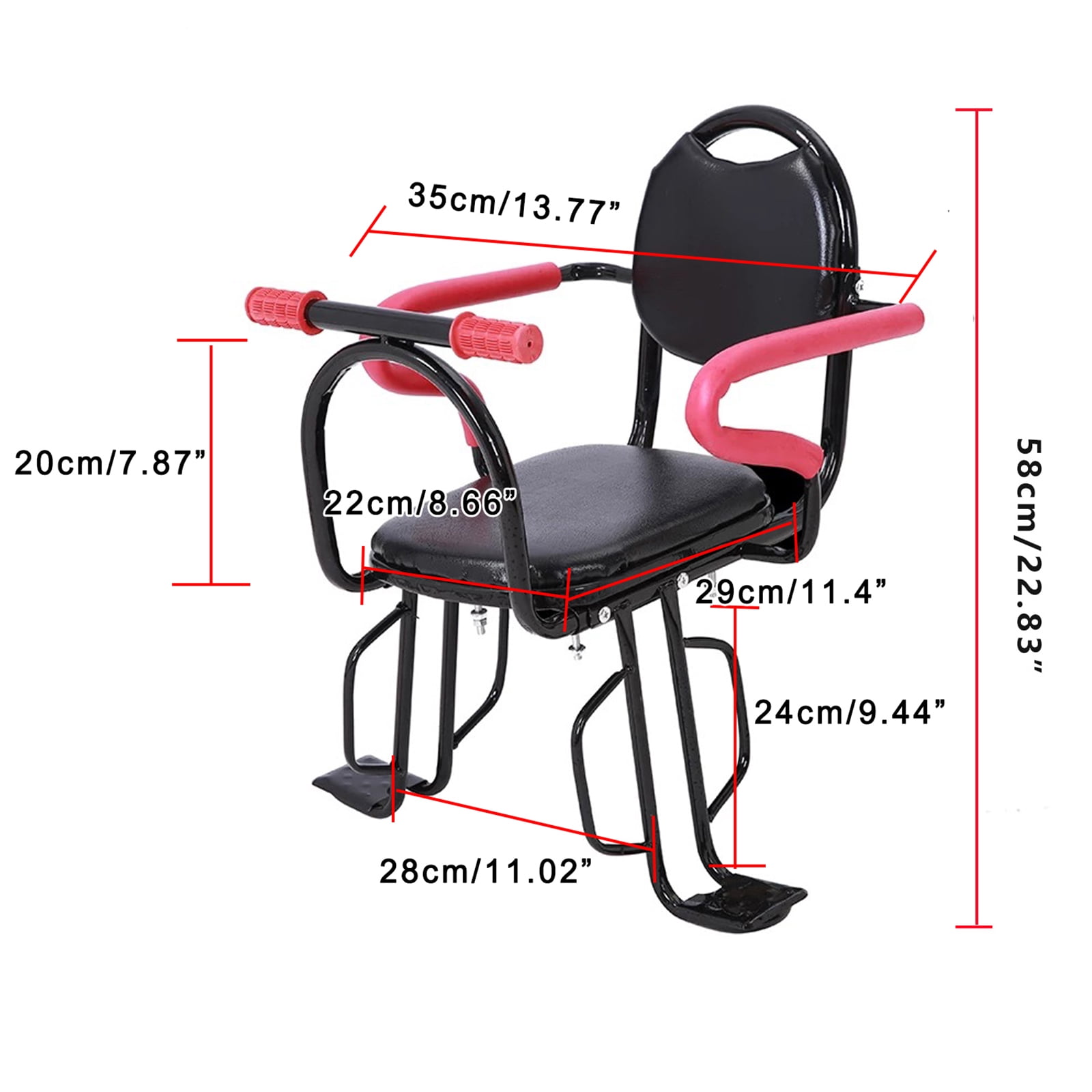 ➤ 【Environmentally Friendly Materials】: Leather cushion, stainless steel pipe, soft armrest, Breathable mesh fence(Made of breathable sponge). Non toxic, odorless, durable and safe to use. ➤ 【Safety】: Non slip handrails and pedals keep children safe, comfortable and free when riding, does not touch the legs,comes with installation tools and safety belts to ensure the safety of children. ➤ 【Stability】: More stable, firm, safe, thickened and widened cushions baby sitting.The size is suitable for children aged 2-7.The maximum load depends on the load of the bicycle. ➤ 【Easy to install】: Powerful quick disconnect assembly for easy installation and removal of seats, suitable for all kinds of bicycles, such as mountain bikes, electric cars, etc. ➤ 【Important Parameters】: Seat width: 13in, height: 7in. Backrest height: 12in.The length of the rear frame of the bicycle must be greater than 25 cm, and the width should be less than 20 cm. Child bicycle seats can be used on standard rear seats and are common to most bicycles.
