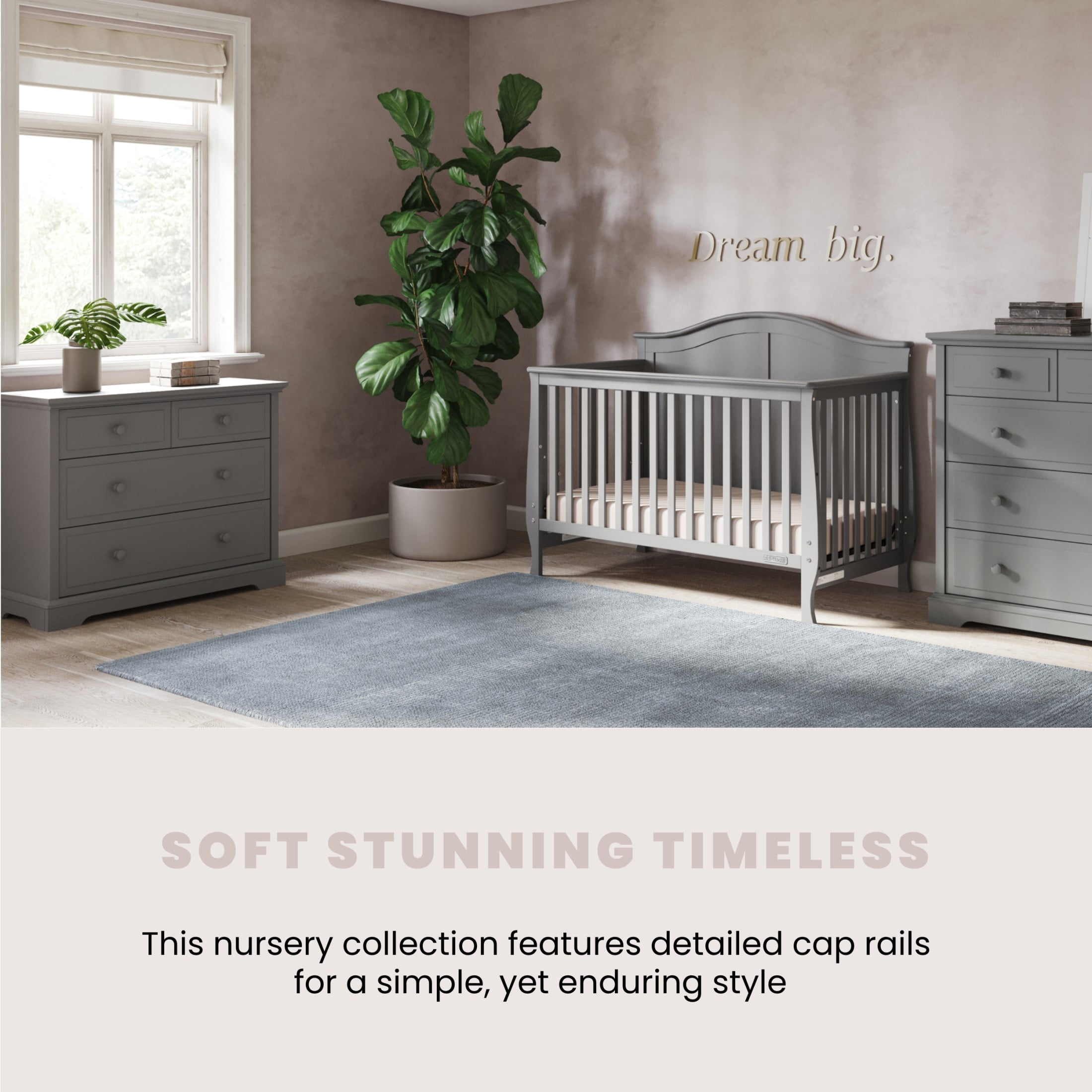 Child Craft Camden 4-in-1 Convertible Crib, Classic Arch Design, 2 Mattress Heights, Cool Gray