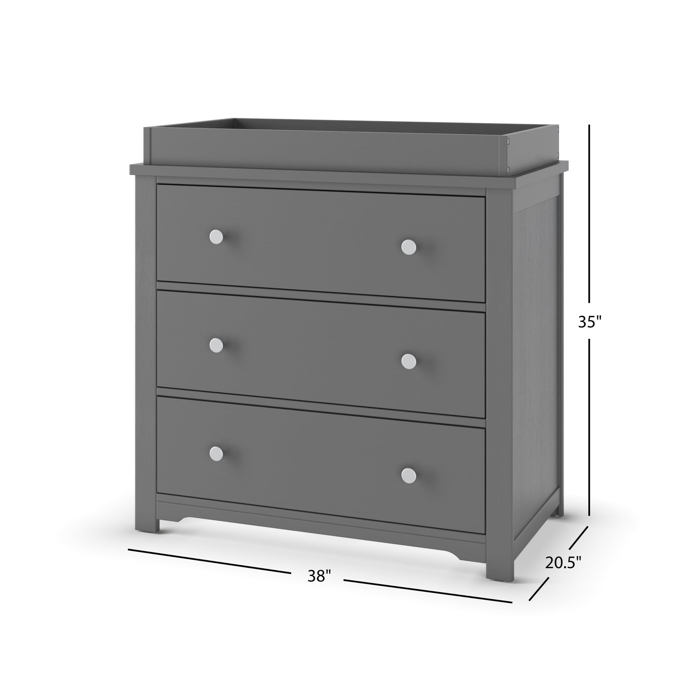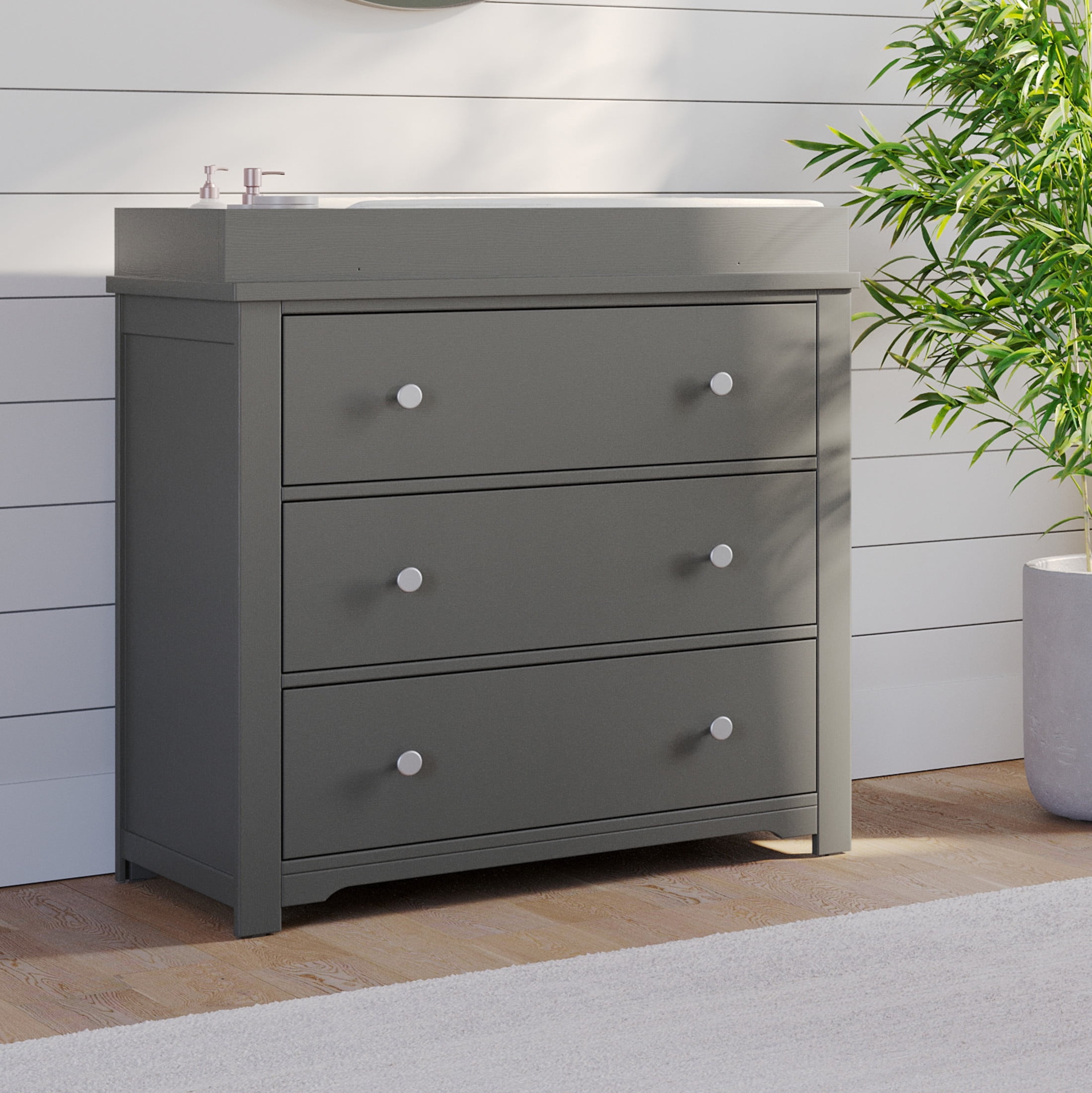 Child Craft Harmony 3 Drawer Dresser with Removable Changing Table Topper for Nursery or Bedroom, (Brushed Pebble)