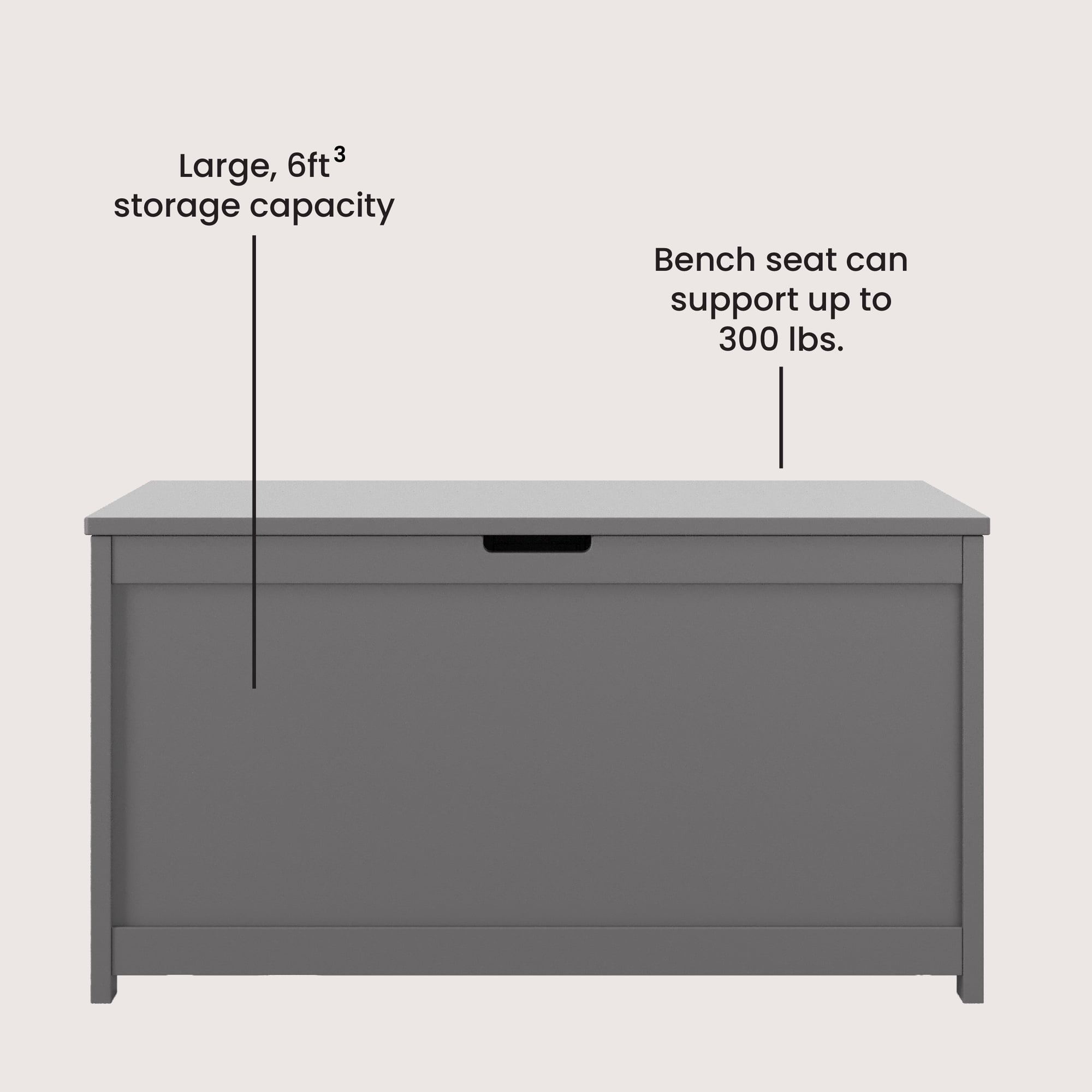 Spacious Storage: Large 6 cu. ft. capacity holds toys, games & more Soft-Close Hinges: Lid closes gently to help protect little fingers Safety Features: Cutout & rear vent hole offer added peace of mind Durable Build: Made from sturdy pine and engineered wood Modern Look: Four available finishes that blend into any room décor Easy to Assemble: Quick setup with step-by-step instructions Multipurpose Use: Great for playrooms, nurseries, or bedrooms Modern Design: Smooth edges and minimalist silhouette for a clean look Internal Dimensions: 31″L x 17″W x 15″H of usable storage space Tested for Safety: Meets or exceeds all industry safety standards