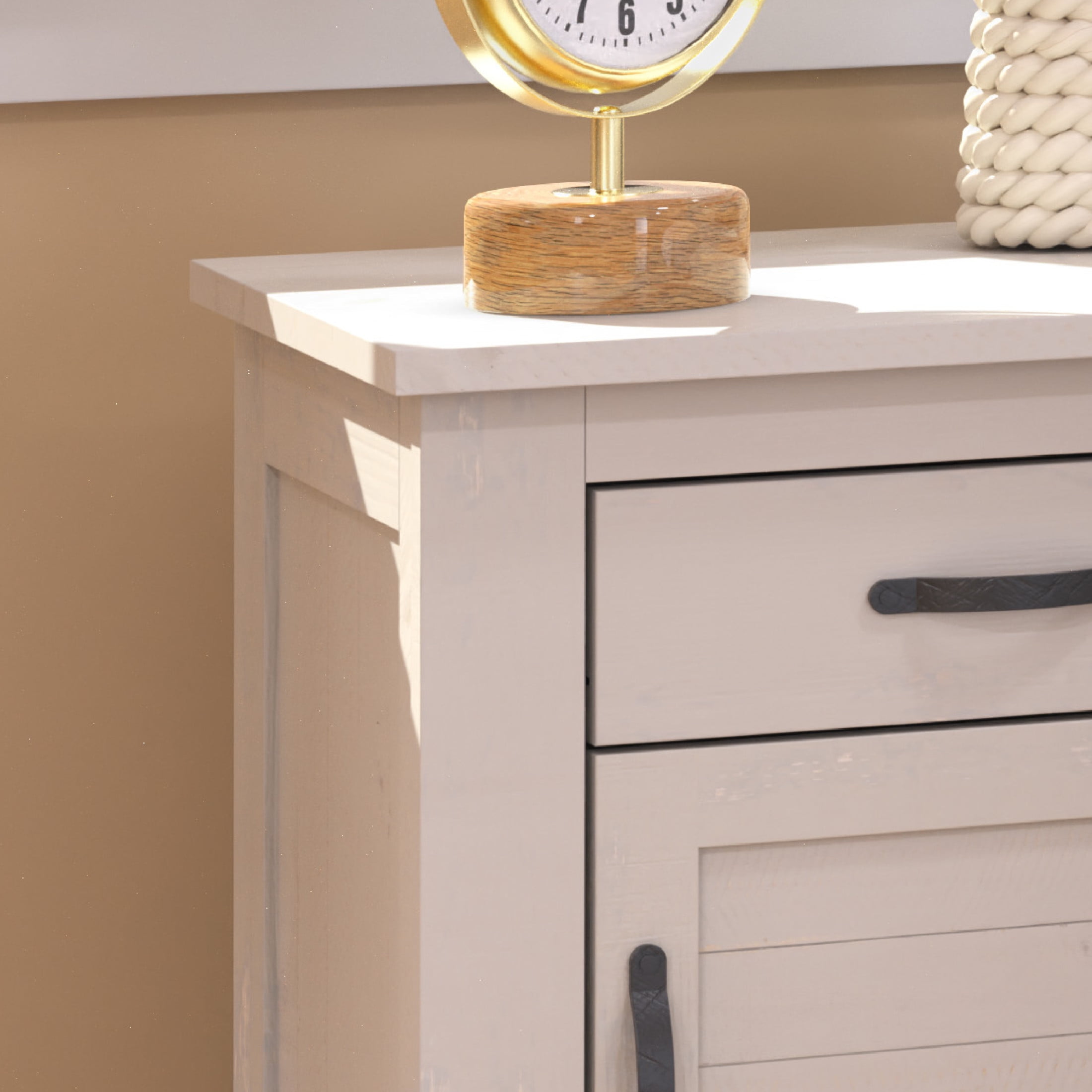 Child Craft Long Beach Nightstand with Drawer & Cabinet Storage, Pine Wood Construction, Pumice