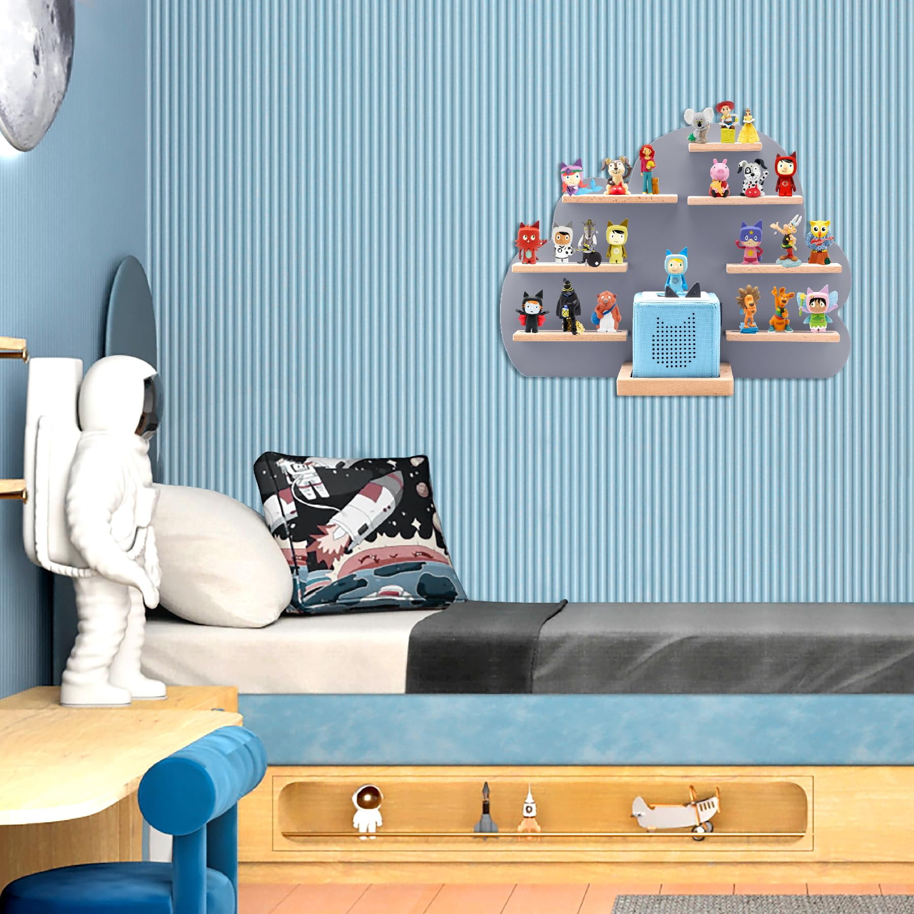 Children’s Shelf Compatible with Toniebox and Compatible with Tonies for Over 30 Figures – Wall Shelf for Music Box – for Playing and Collecting – for Children Baby Room