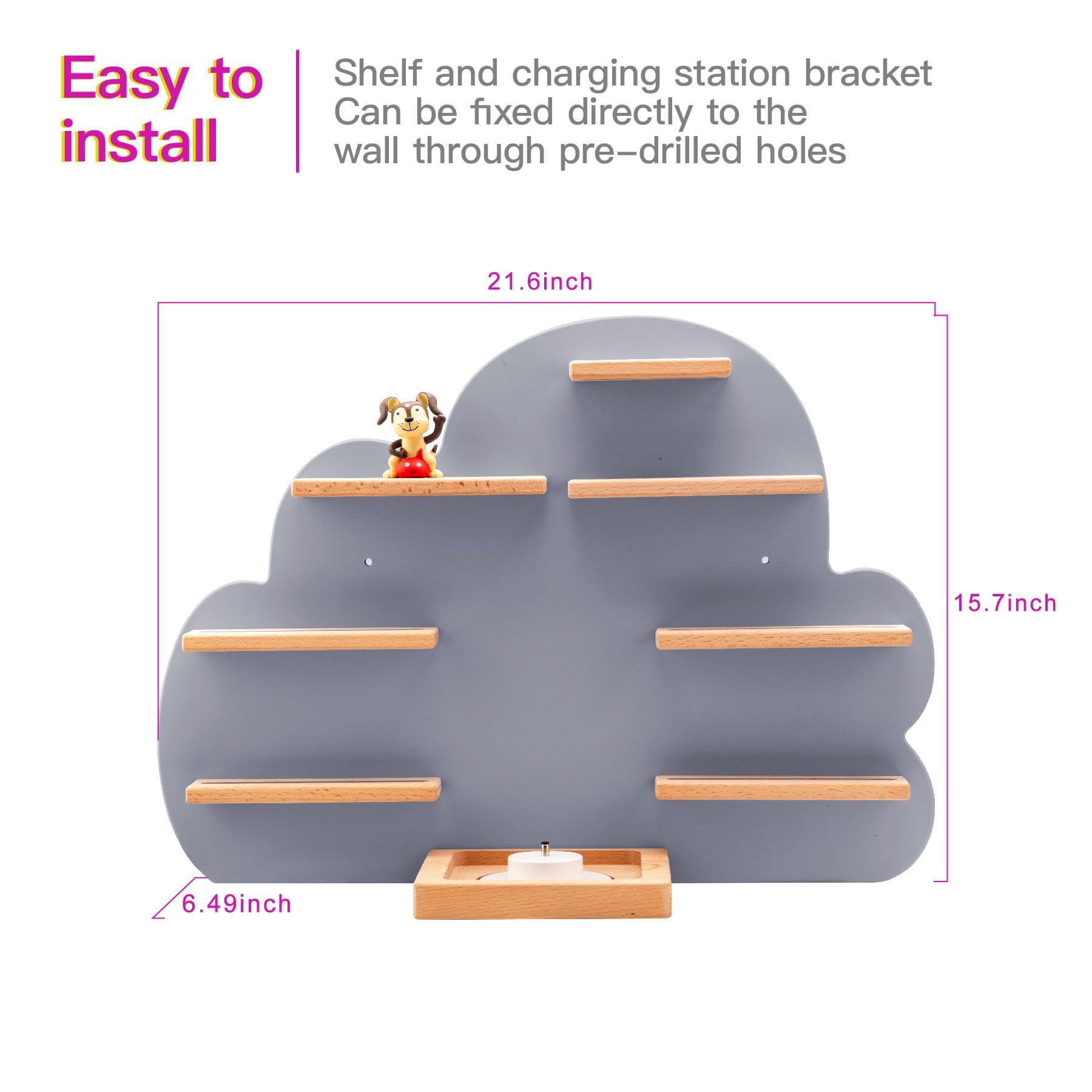 “Product description Number of shelves: 1 Product dimensions: 19 x 55x 40cm Style: Modern Age range (description): Children Surface type: Wood grain Brand: SHUNSRSW Product Care Instructions: Wipe clean with a dry cloth Dimensions: 19D x 55W x 40H cm Assembly required: Yes Recommended products for children Charging tray Styling back panel Wooden slatted storage shelf Hardware accessories”