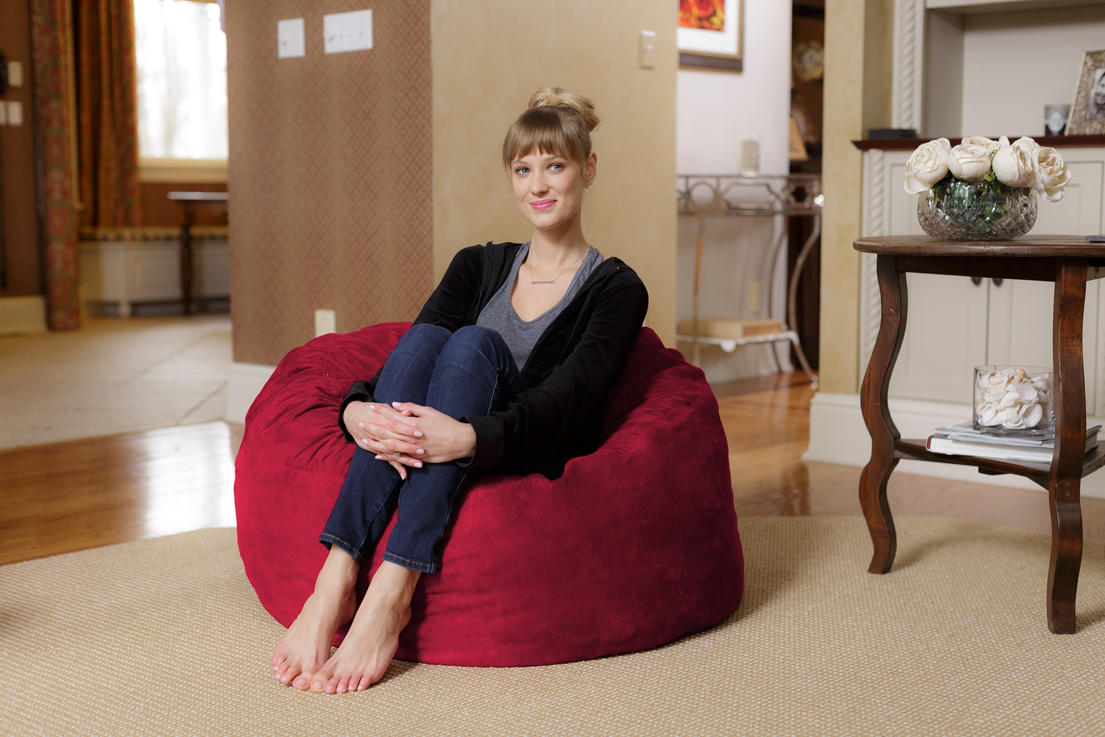 Chill Sack Bean Bag Chair, Memory Foam Lounger with Micorsuede Cover, Kids, 3 ft, Cinnabar