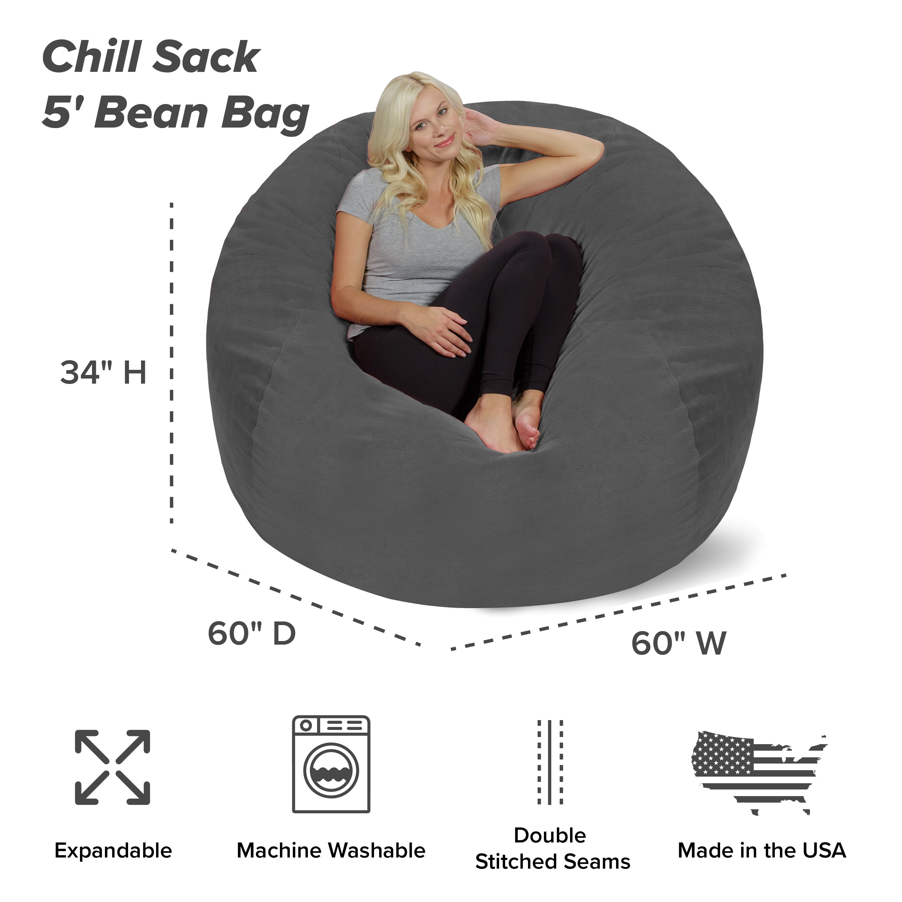 FUN FOR EVERYONE: A great size for both kids and adults, this comfy bean bag is the perfect furniture addition to any basement, family room, dorm, or bedroom whether as a gaming chair or a study spot OVERSIZED SACK: Collapse into a seat that loves you back and forms to fit your body; with space for two, you can cuddle close, share with a friend, or spread out to really relax SHREDDED MEMORY FOAM: Chill Sack bean bag chairs are stuffed with a shredded, soft, memory foam blend that is highly durable to maintain shape while increasing comfort levels for the ultimate chill moments SOFT PREMIUM FILL – Made with high quality, light, and the fluffy US. Covers are soft, supple, and sensuous to the touch. Yet it’s also resistant to stains and discoloration. It’s even machine-washable. Our premium microfiber covers are the perfect blend of comfort, ease of care, and durability MACHINE WASHABLE COVER: The removable double stitched microsuede fiber is soft to the touch, machine washable, and resistant to stains, and discoloration for easy maintenance