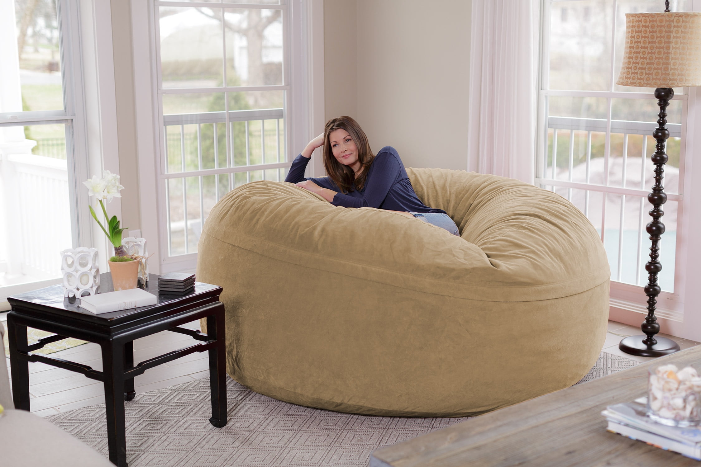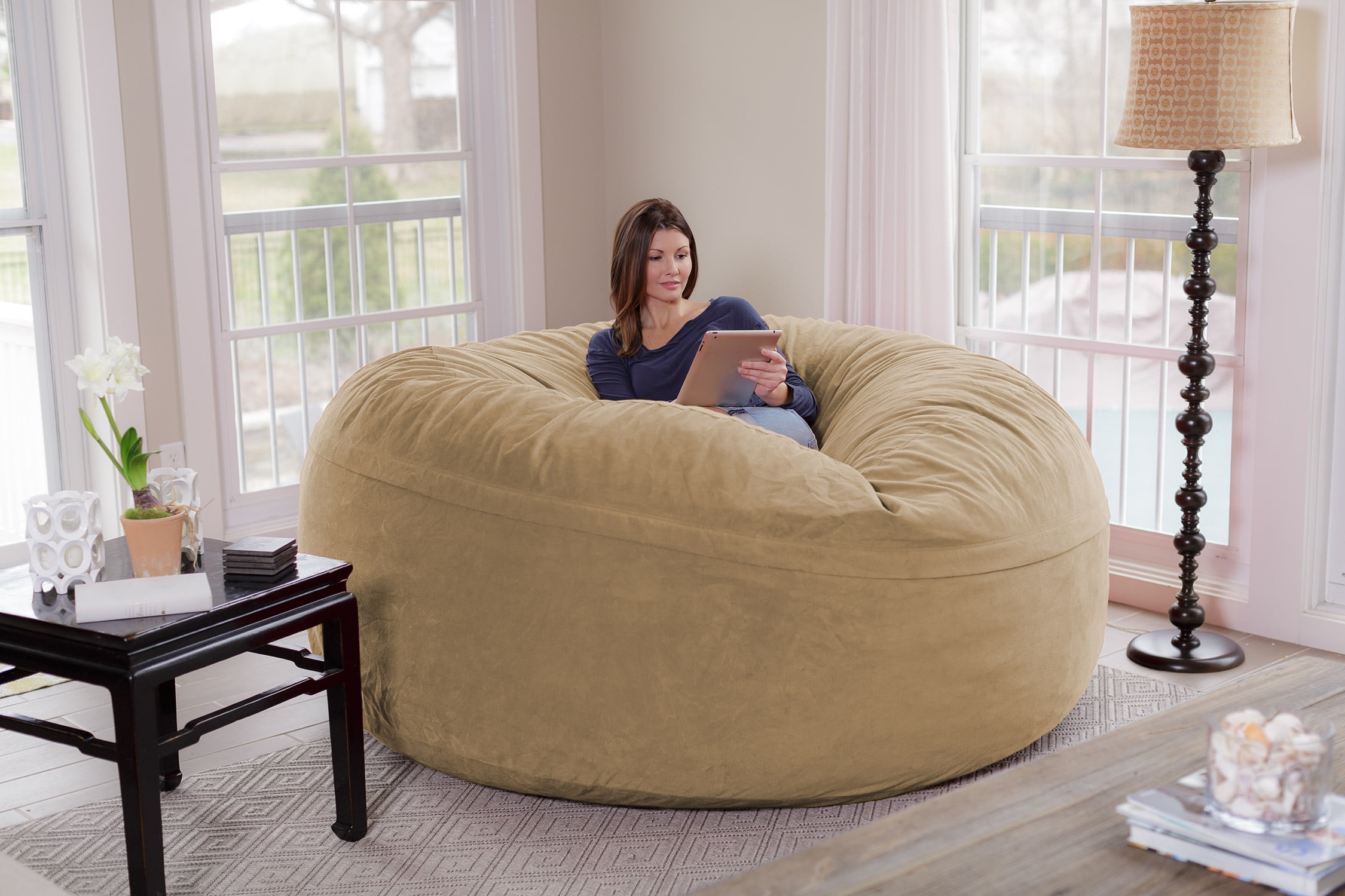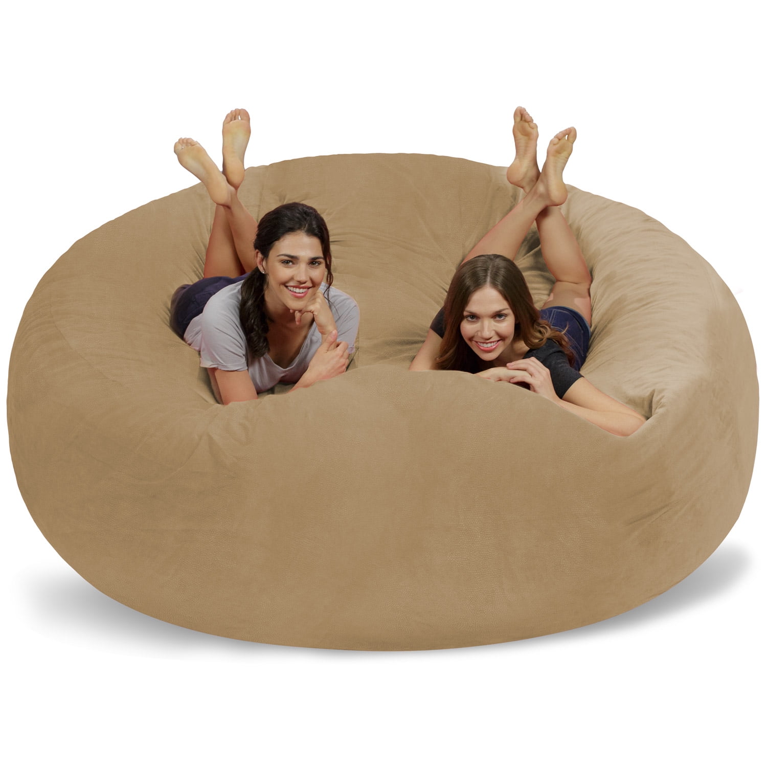 Chill Sack Bean Bag Chair, Memory Foam Lounger with Microsuede Cover, Kids, Adults, 8 ft, Tan Pebble