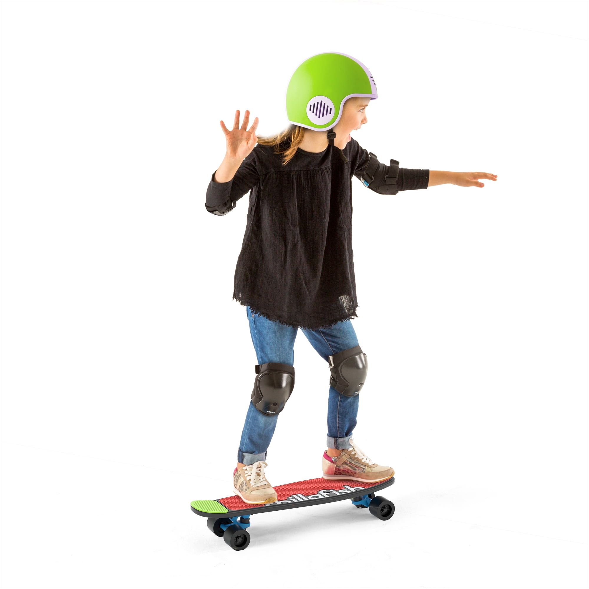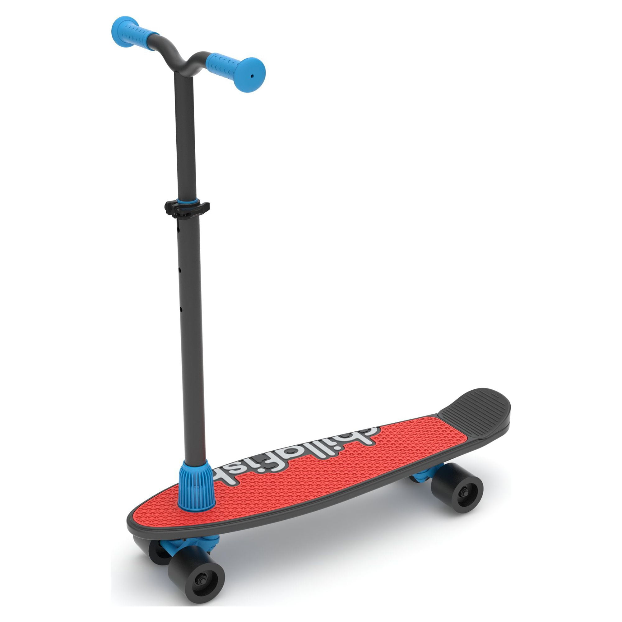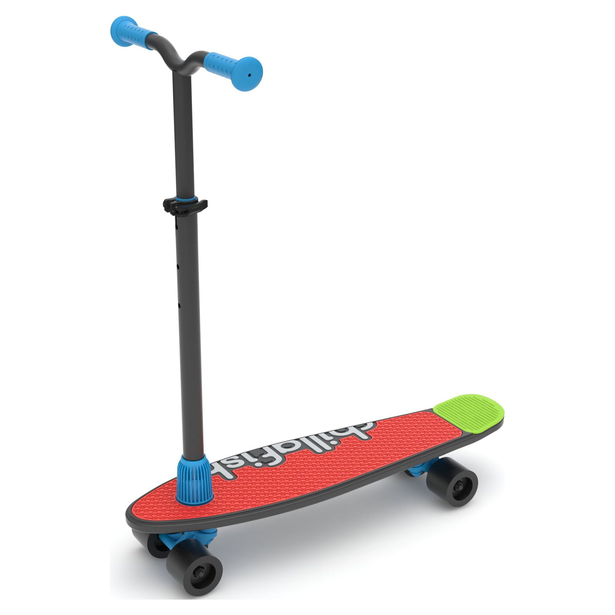 Chillafish SkatieSkootie is a 4-wheeled customizable skateboard and lean-to-steer scooter in one. The 4-wheel elongated wheelbase and the detachable stability handlebar are developed for easy control and stability and this makes it perfect for younger children to safely learn to balance and skate. For kids with no experience in skating, they can hold on to a handlebar to master the balance at first and later take off the handlebar to have a first skateboard. So when they are ready: just turn, unlock and pull, no tools needed to take off the handlebar. The wheelbase of the SkatieSkootie is longer than usual – in comparison to the deck. This makes the board less prone to topple forward or backward and thus more stable. Easier to learn. The handlebar can be adjusted with a quick release to different heights to suit the child’s height, (24,4-31,1 inch / 62-79 cm). Customize your SkatieSkootie: it comes with the 3 included colored decks and 3 included colored tails. Looks like a new toy each time you change the color! The 3 included tails also have a different angle, making it fun to try a new style of riding – simple and safe or etchy and quick. Create the perfect combination that fits you best. Built with steel-reinforced PP plastic, ABEC-7 bearings and polyurethane wheels, and TPE comfy handgrips, SkatieSkootie will ensure you glide through the park with easy. Scoot to become a skater!
