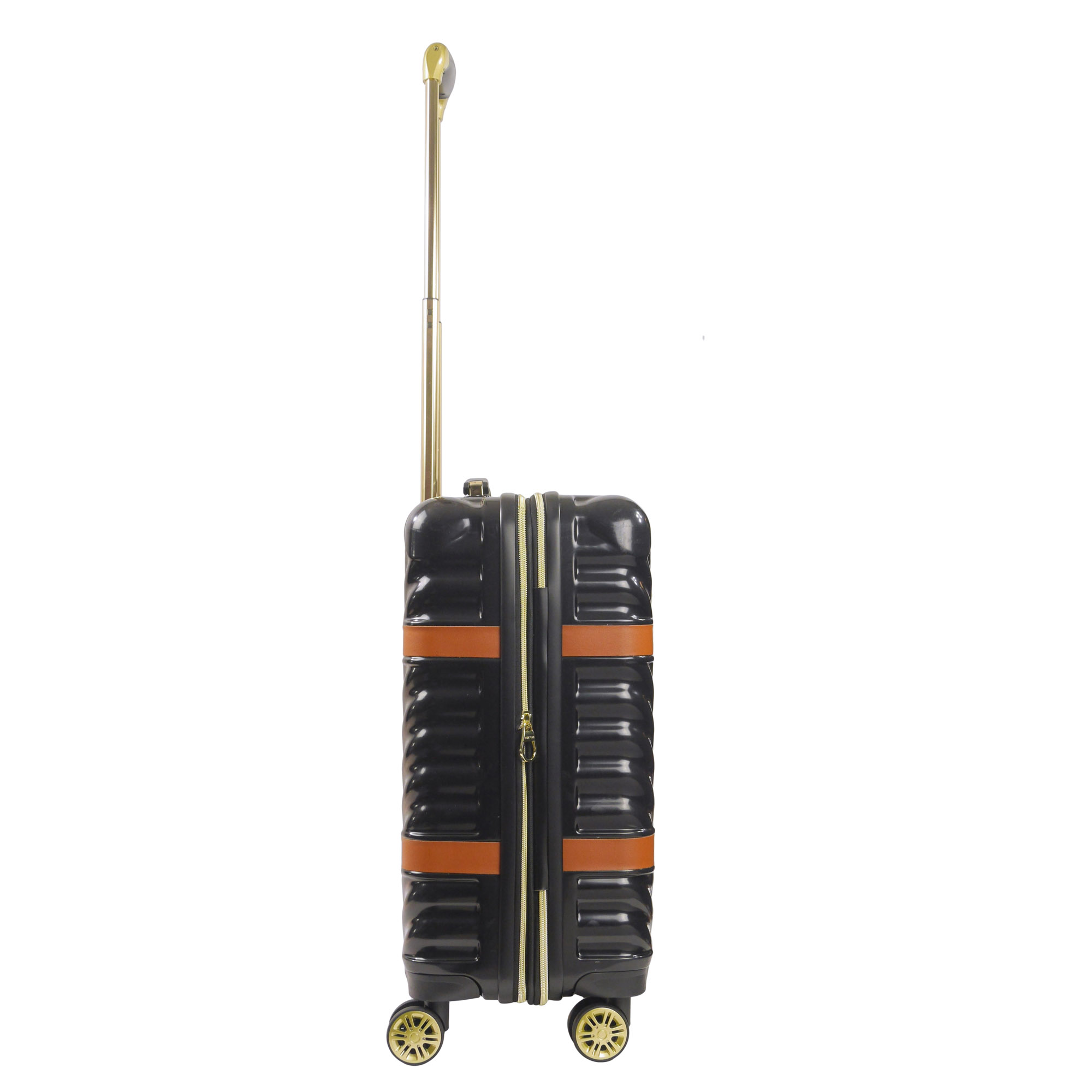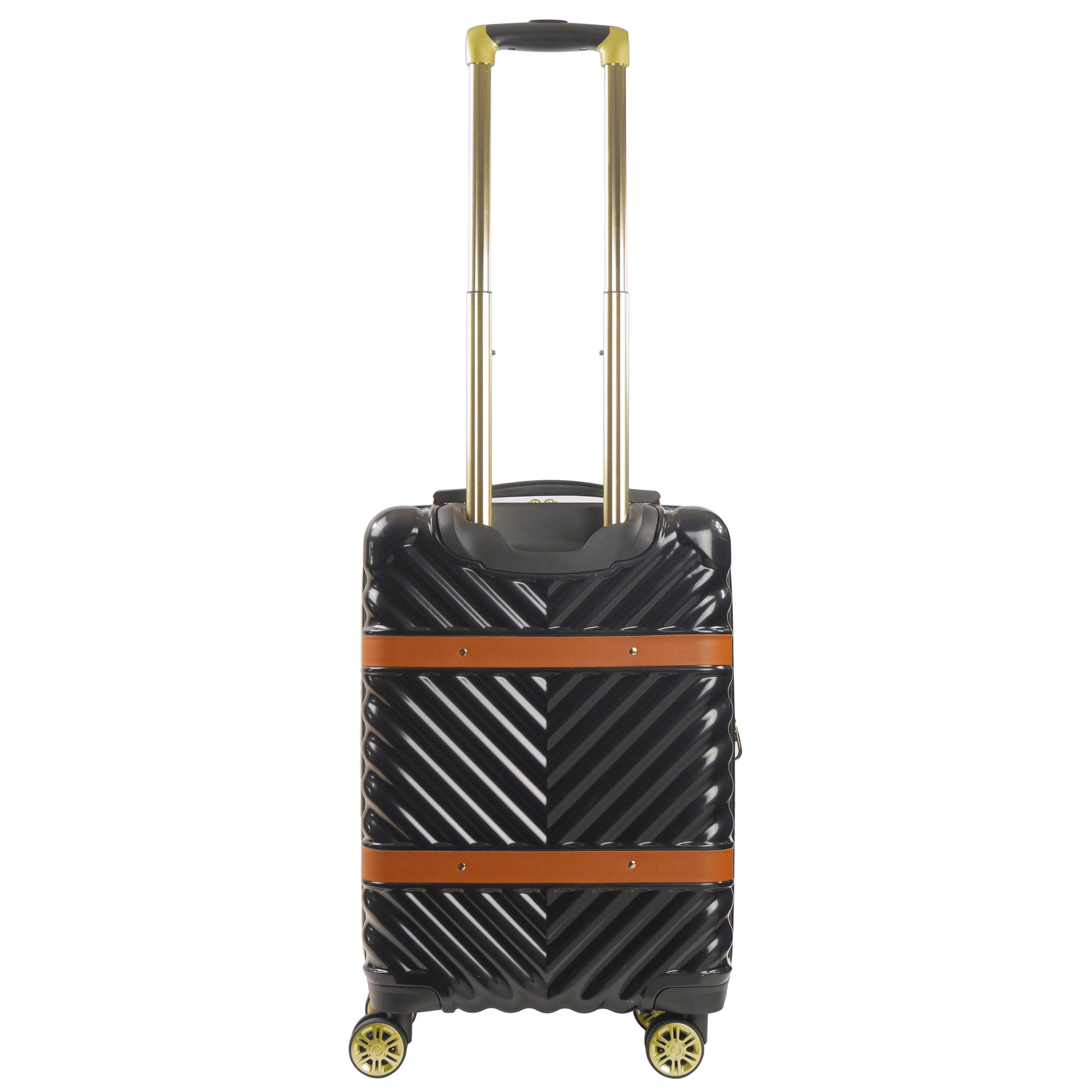 Officially licensed Christian Siriano New York hardside luggage with a sleek luxurious design with striking gold hardware; Hardshell luggage carrier meets most airline requirements for carry-on luggage and fits into most overhead bins Hard luggage features a divided full-body main compartment and an interior zipper compartment for storing your belongings, clothing compression straps to keep clothing from wrinkling, and features expandable storage with 2-inch zipper gusset Wheeled luggage bags feature a lightweight upright design with eight 360-degree multi-directional spinner wheels and a retractable handle which allows for effortless movement Travel luggage bag features a hard shell ABS plastic case which protects your luggage and is easy to spot clean Hard shell suitcases measure 22.5 H x 14 W x 10 D in inches, and weigh 6.5 lbs
