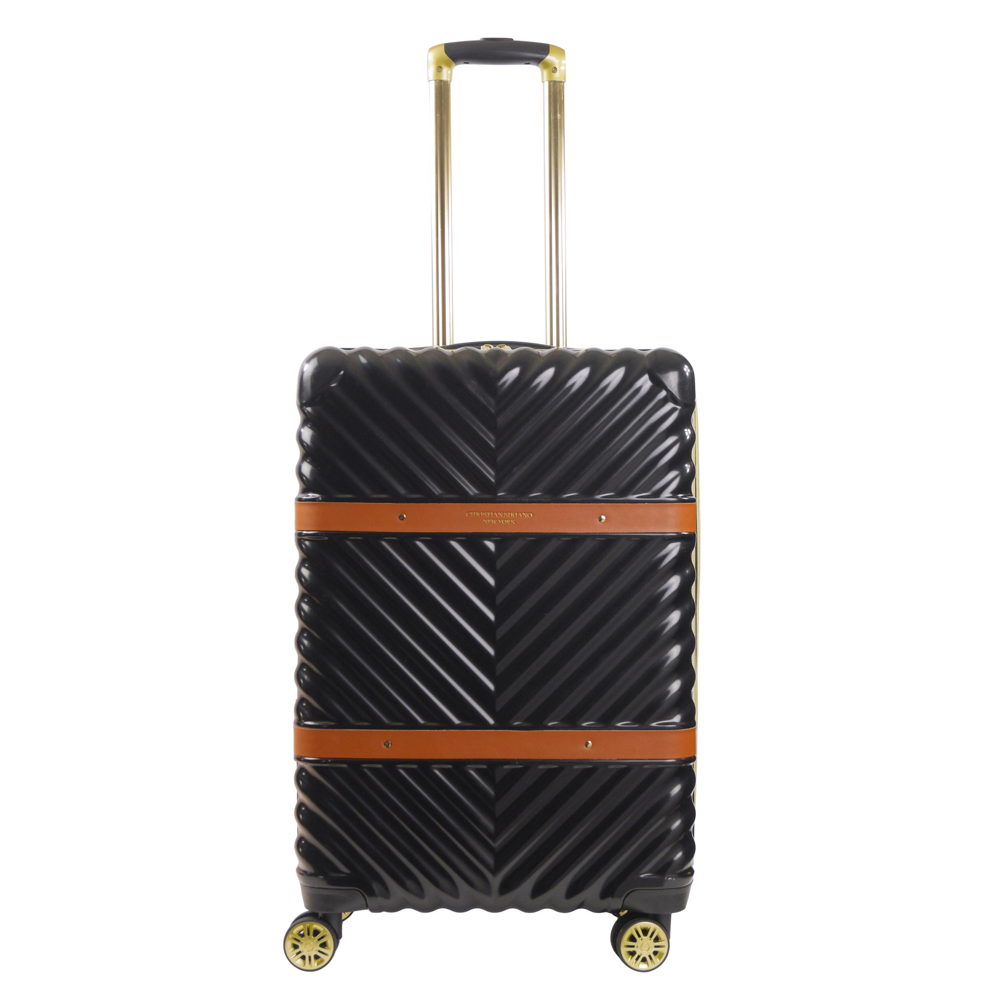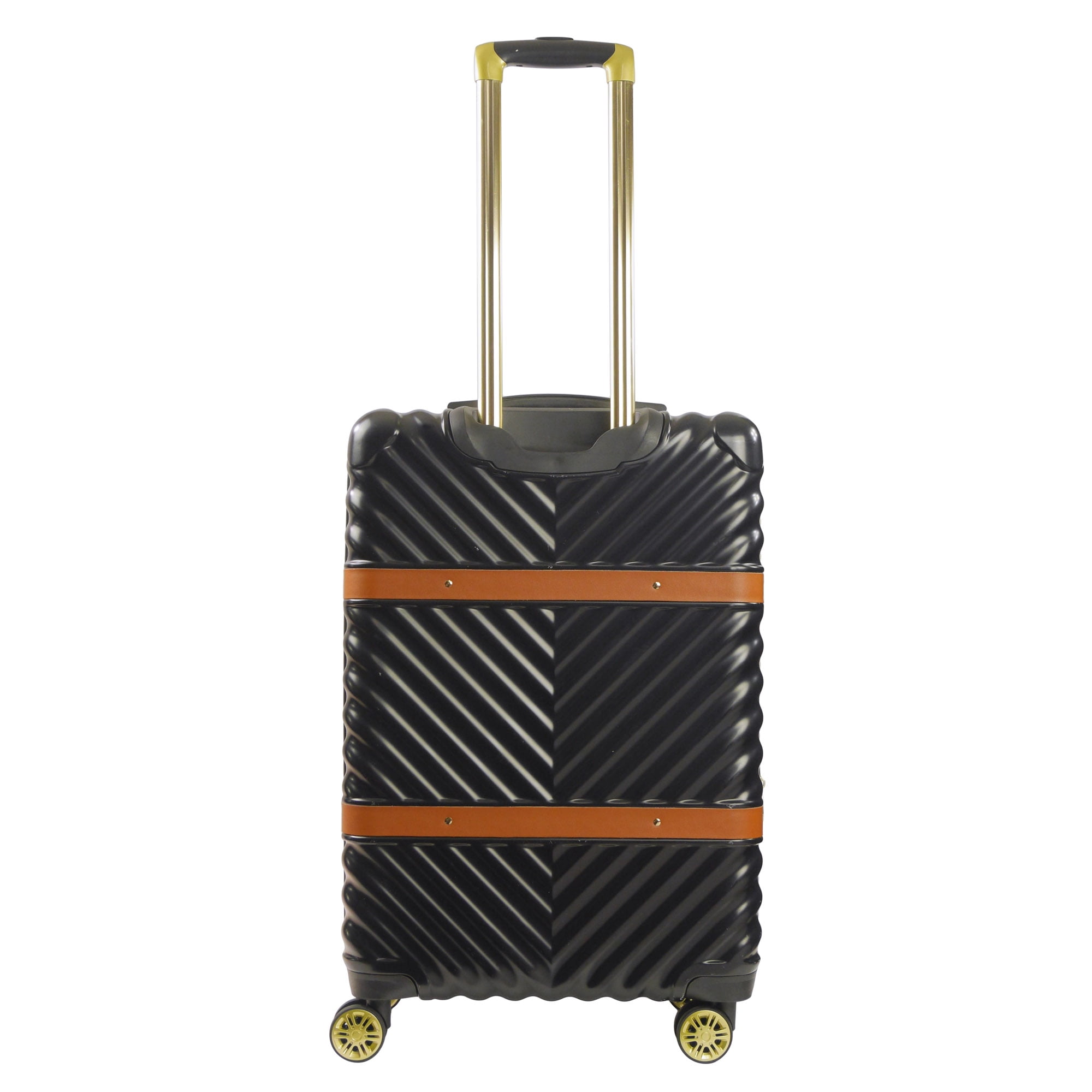 Officially licensed Christian Siriano New York hardside luggage with a sleek luxurious design with striking gold hardware; Hardshell luggage carrier is intended as checked baggage for airlines Hard luggage features a divided full-body main compartment and an interior zipper compartment for storing your belongings, clothing compression straps to keep clothing from wrinkling, and features expandable storage with 2-inch zipper gusset Wheeled luggage bags feature a lightweight upright design with eight 360-degree multi-directional spinner wheels and a retractable handle which allows for effortless movement Travel luggage bag features a hard shell ABS plastic case which protects your luggage and is easy to spot clean Hard shell suitcases measure 26.5 H x 16.5 W x 11 D in inches, and weigh 7.5 lbs