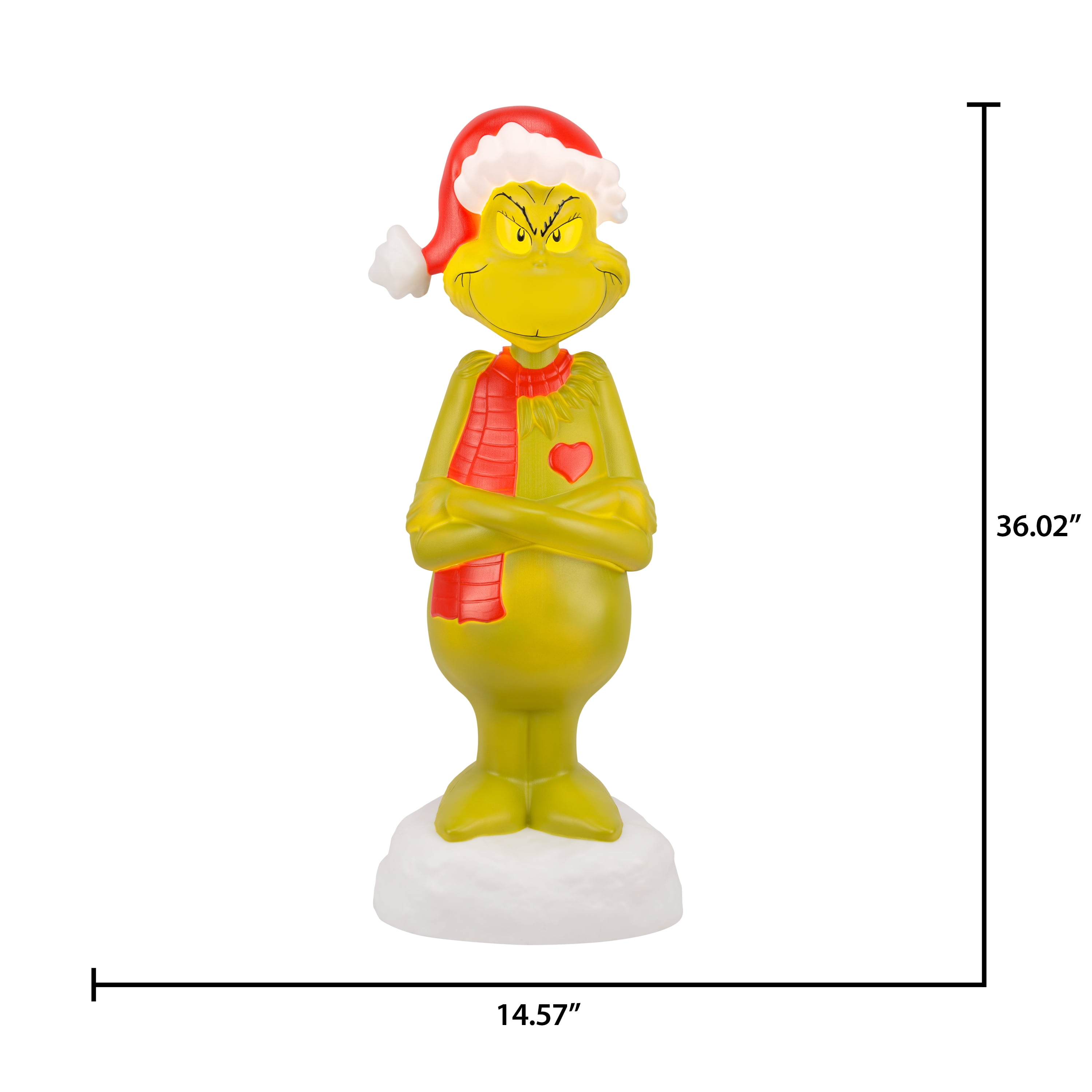 Christmas Lighted Blow Mold Outdoor Decor Grinch with Scarf Dr. Seuss, 36 in