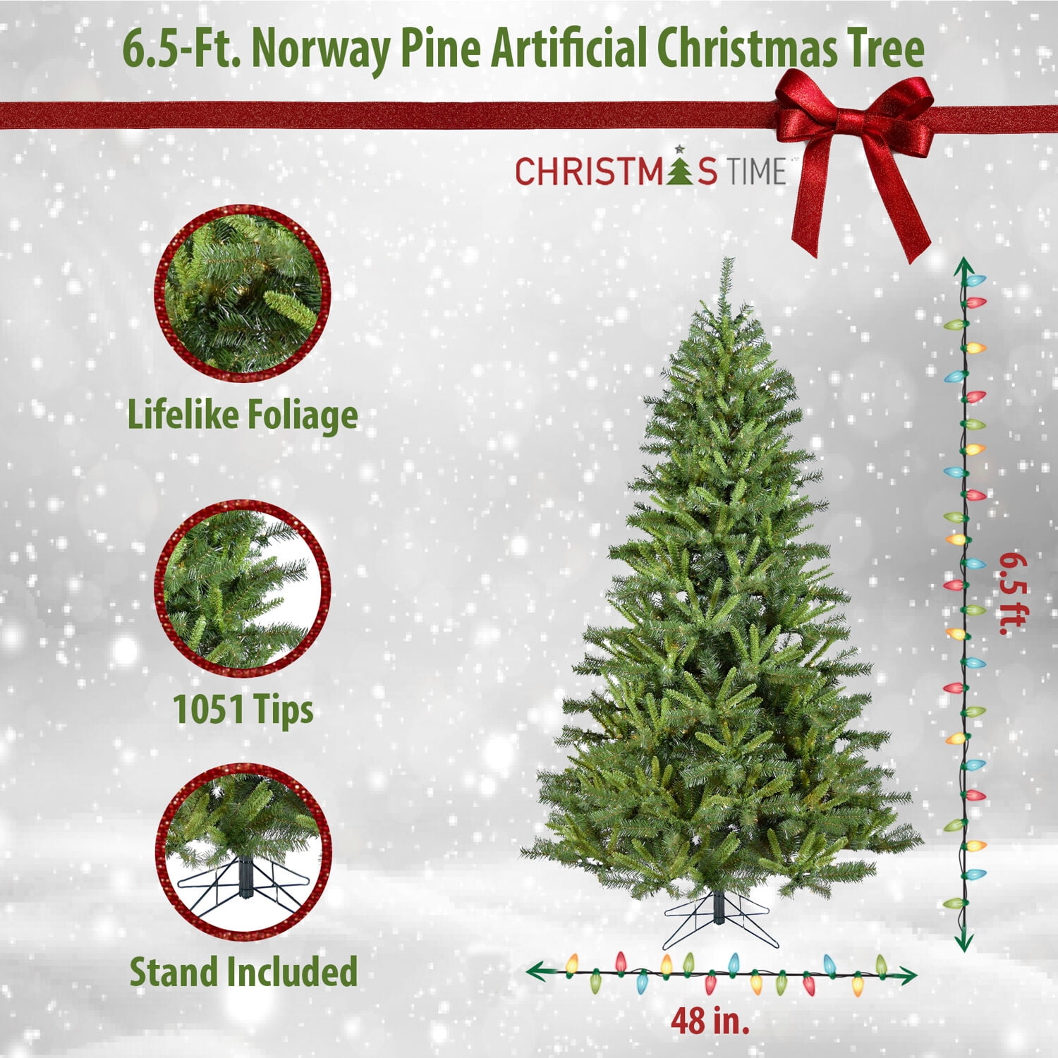 Christmas Time 6.5-Ft. Norway Pine Artificial Christmas Tree, CT-NP065-NL