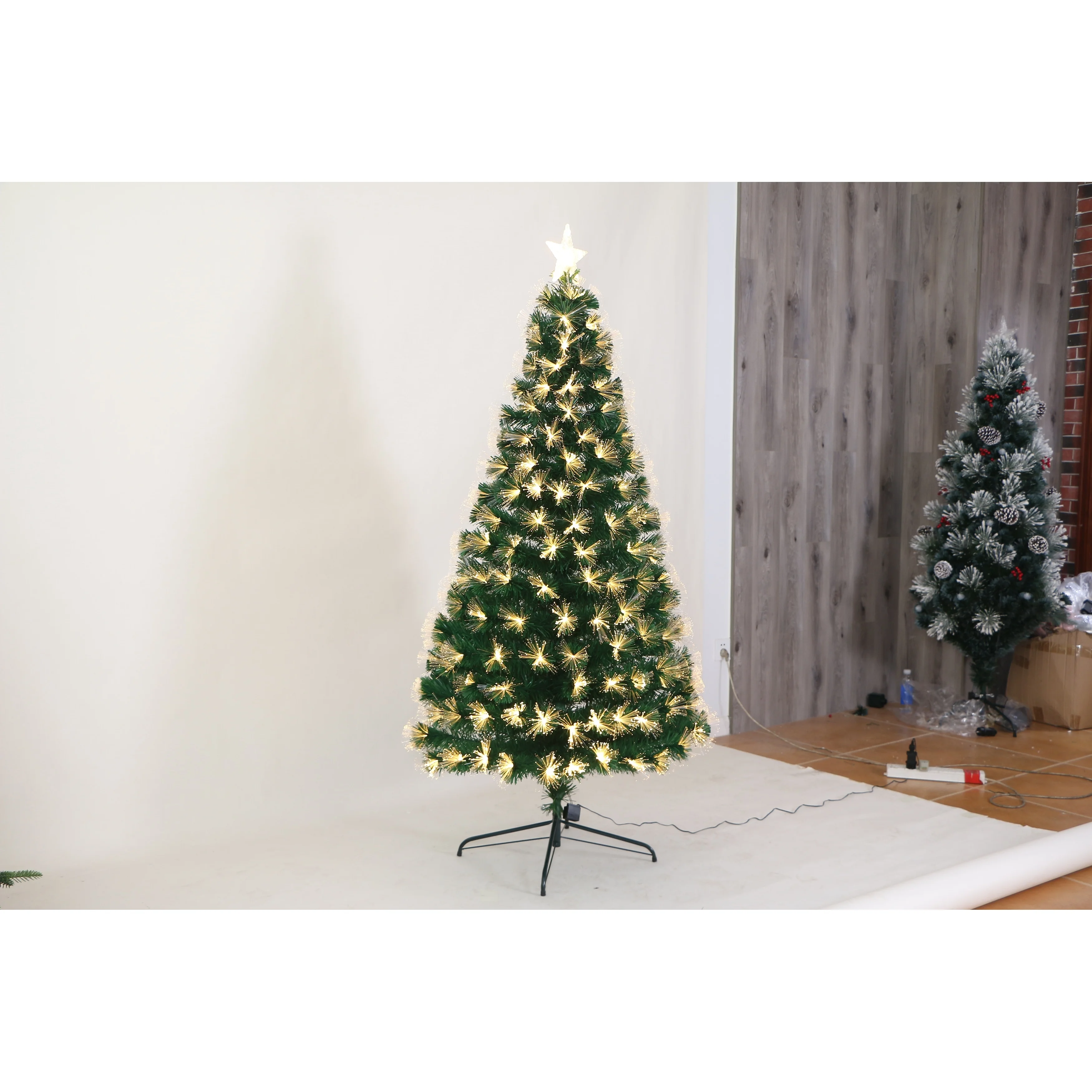 Turn your home into a real Winter Wonderland with this stunning Christmas Tree with warm fiber lights.The beautiful xmas tree is decorated with warm white static LED lights, pine cones and bunches of red berries. The branches have frosted needle tips for a winter wonderland effect. This traditional green pine xmas tree is so easy to set up.