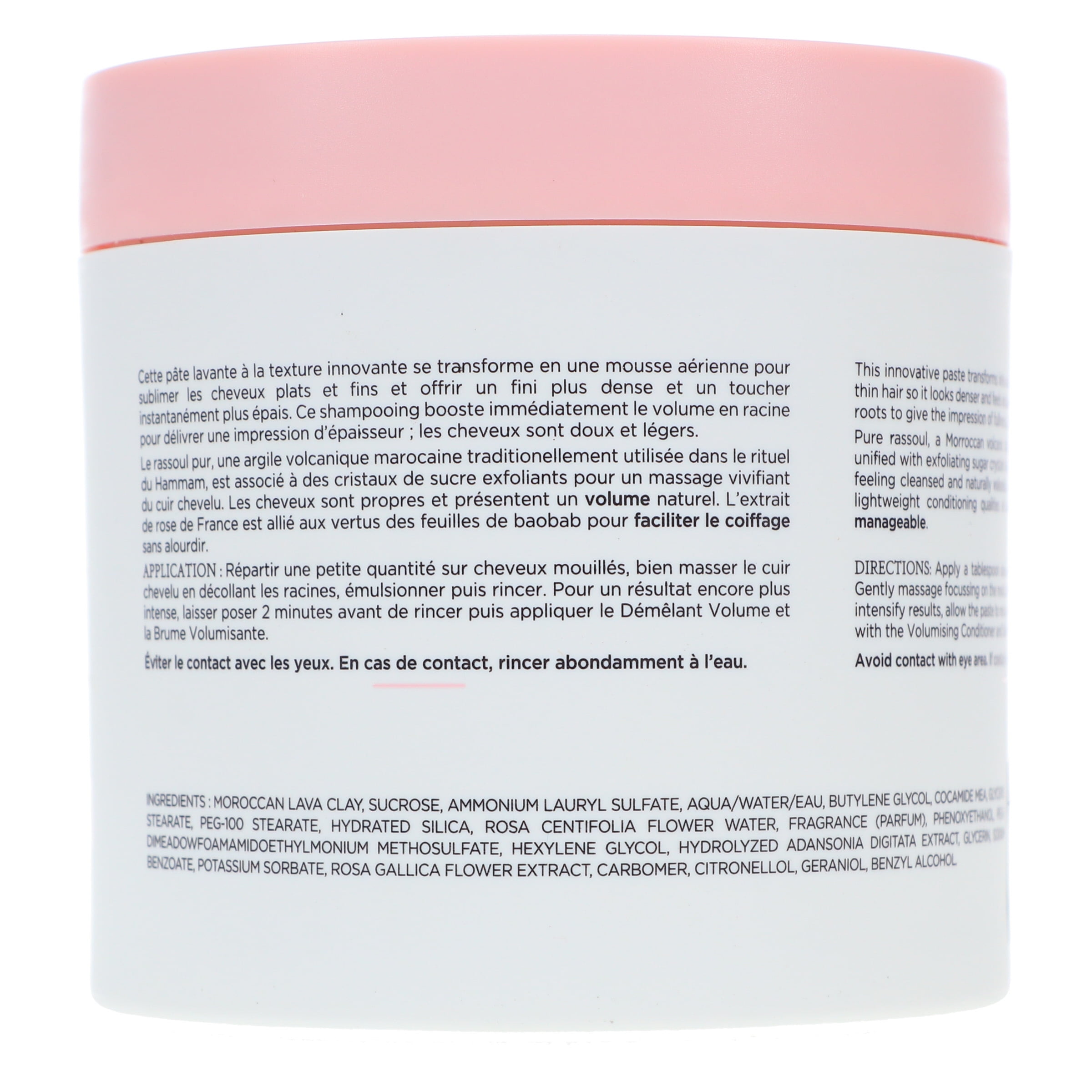 Helps create volume at the root Creates visible thickness without weighing hair down Helps preserve and enhance hair color Volume shampoo paste with rassoul clay and rose extracts takes fine, flat, or thin hair to the next level Volume shampoo paste with rassoul clay and rose extracts takes fine, flat, or thin hair to the next level.
