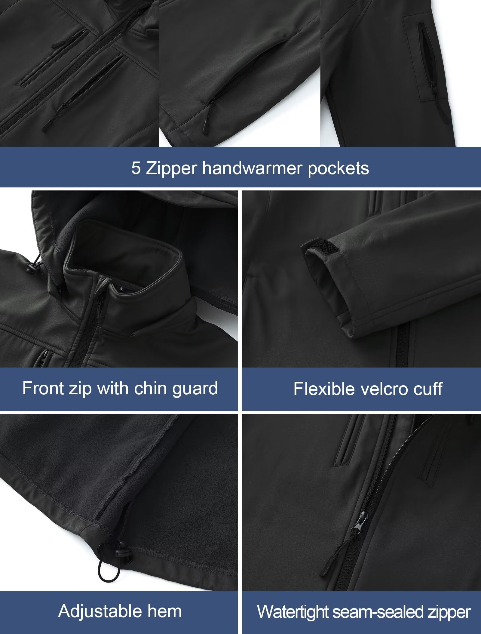 Waterproof and keep warm:DWR (Durable Water Resistant) treated softshell exterior offers windproof performance while maintaining breathable comfort and repels light rain, moisture and snowflake.Men’s softshell jacket features our durable water and wind resistant shell to keep the elements out while keeping you dry and warm. With 3000mm/H2O waterproof index.Built-in high permeability film contribute significantly to waterproof Durable Breathable Fabric : This Lightweight Coat is crafted of a 100% polyester soft shell .with superior durability and resilience,These lightweight, stretchy and durable materials provides you with maximum movement, comfort and security when you enjoy adventure.Fully machine washable More Detail Design:5 outside pockets (2 zippered chest pocket and 2 zippered slash hand pockets,1 Arm pocket) guarantee enough room to stash items.2 Large interior pockets.multiple pockets to offer plenty storage for essentials.Fully zips up to the stand collar protecting your body and neck from the elements. softshell exterior, fleece-lined interior .Adjustable Velcro cuffs with hook and loop fastener and a drawstring hem line. These adjustable parts offers a perfect fit Reflective and Occasion: Removable hood back reflective strip design .Keep you safe in low light environment,suit for Outdoor activities in the night.Lightweight soft shell warm fleece jacket is the great choice for casual daily work wear, military army outdoor, outdoor sports, snowboarding, skiing, mountaineering, skating, traveling, camping, hiking, cycling, climbing, fishing, riding, hunting, travelling and adventure. Customer Service:This insulated jackets is perfect for any season. If you have any questions, please feel free to contact us