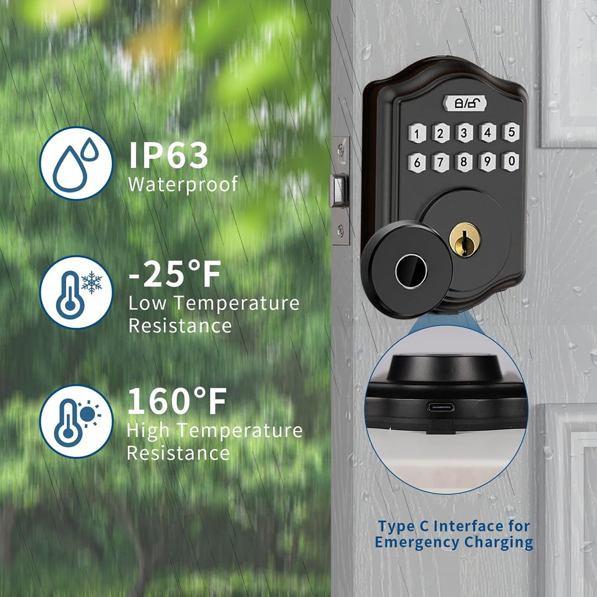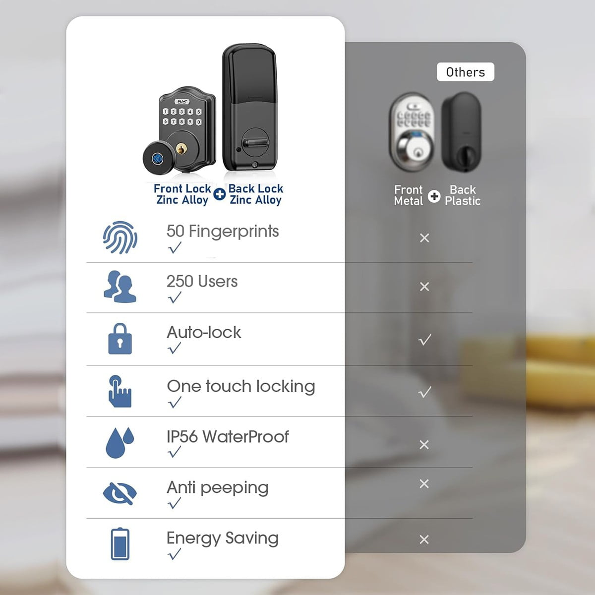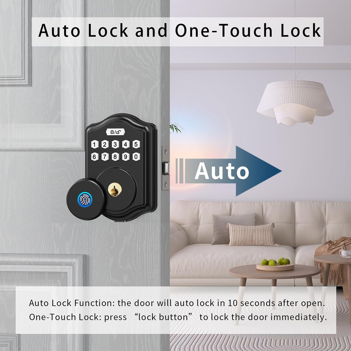 About us: Cikuci is committed to providing consumers with high-quality products and satisfactory service. The 30-day free return policy brings you a better shopping experience. If you have any questions, please contact our customer service and we will provide you with a satisfactory solution. customer satisfaction is our greatest motivation Product Description: 1. One-click fingerprint access: Fingerprint unlocking, no longer worry about losing keys or forgetting passwords. Unique fingerprint algorithm logic, suitable for the elderly and children, and suitable for families of multiple ages. 2.100 User Codes: This keypad lock provides 100 access codes to meet the needs of home and business use. 3. Durable and energy-saving: made of zinc alloy and aluminum alloy, with 100,000 laboratory unlock durability tests. Standard professional instruments are used to test the temperature. “Big difference between hot and cold temperatures” is still valid, and “hot and cold” does not consume electricity. 4. Multifunctional deadbolt: Password protection – 4~10 password length, enter random numbers to confuse the eyes. Silent mode – turns the sound on and off, Access mode – when this mode is turned on, it will not be locked and can be used freely to open the door. 5. Smart custom unlocking and waterproof: 5-69 seconds to lock with custom settings. Standard IP65 dustproof and waterproof structural design, suitable for use in North America. Product parameters: Unlocking method: digital password unlocking/fingerprint unlocking/key unlocking Product material: zinc alloy + aluminum alloy Product size: 17.78 x 7.62 x 10.16cm Style: Fingerprint door lock Color: Matte deep black Number of pieces:1 Item weight: 454g Batteries Required: Requires 4 x 2A batteries (not included) Package includes: smart lock front and rear panels + 2* keys + instructions