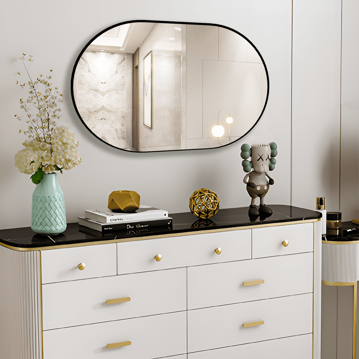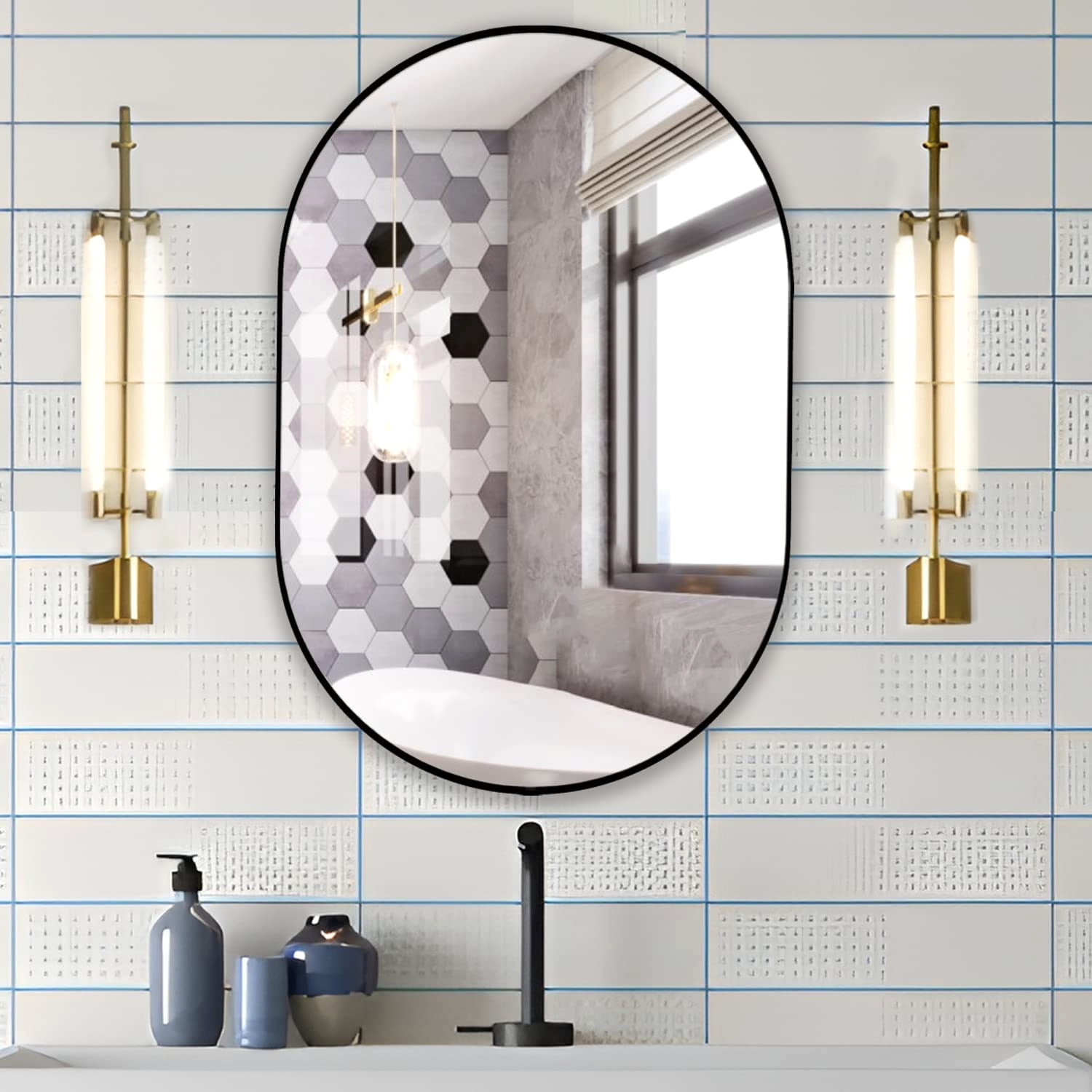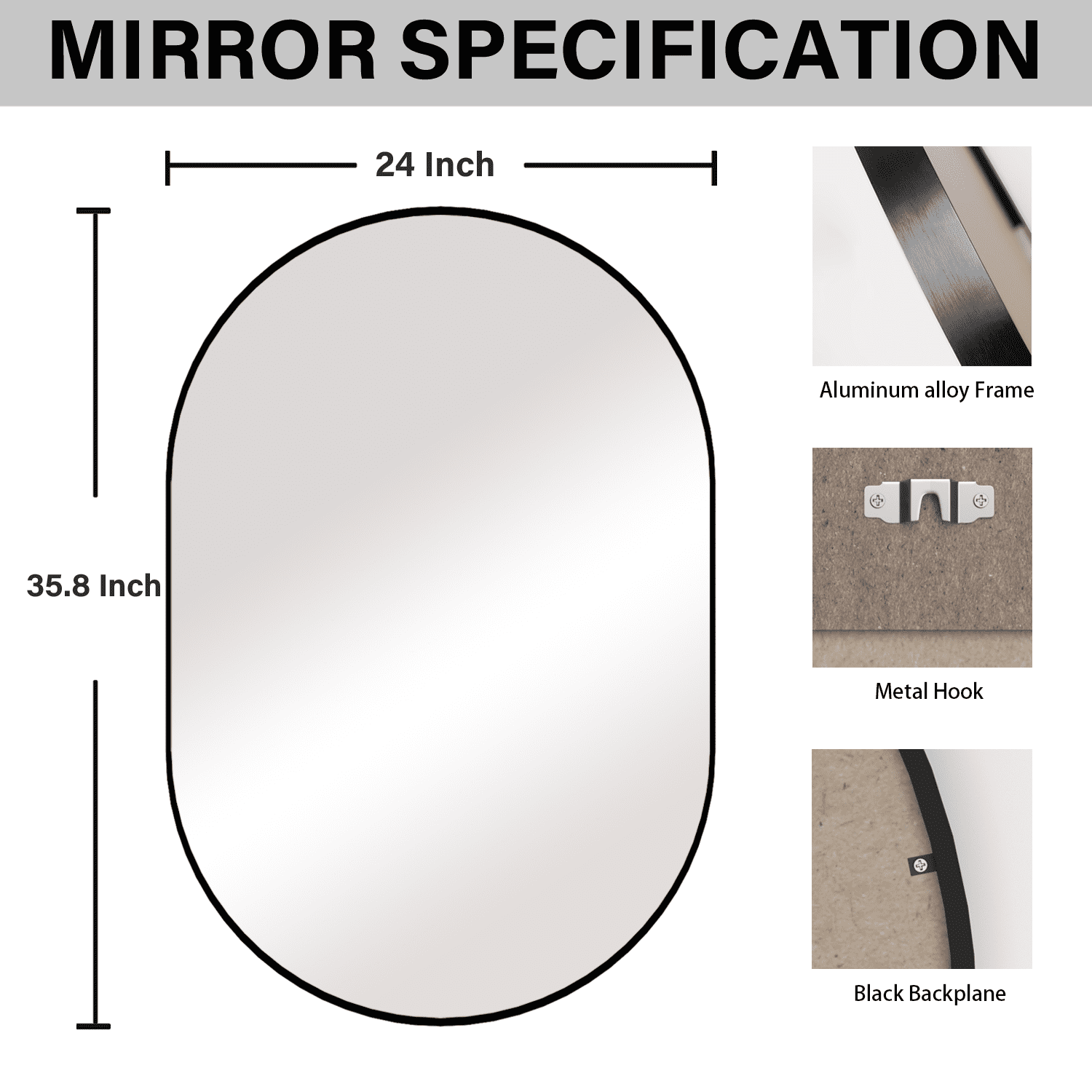 HD MIRROR & MODERN DESIGN: The Black ovel mirror for wall size 20″ x30” is also a great ideal for setting above a vanity or accenting the entryway add sparkle to your space in a modern and stylish way. This large mirror is long enough to give you a good view without being too big to take up space. Fine workmanship provides ultra-safety and stability and longer service life. EXPERTLY CRAFTSMANSHIP: The modern bathroom mirror with premium aluminum alloy frame. After special anti-corrosion mirror treatment, rust-proof, and fadeless. Thin frame mirror, brushed craft protects its surface from scratches and wearing. Sturdy and robust with high stability. HD MIRROR & MODERN DESIGN: Our oval vanity mirror adopts premium 6-layer shatterproof float glass. The wall mounted mirror for wall decor provides a clear, undistorted reflection. The back is covered with a shatterproof membrane to prevent splashes when broken by external force. No worry about kids getting hurt EASY INSTALLATION&WIDE APPLICATIONS: The larger contemporary wall mirror are perfect addition to washroom,bedrooms, bathrooms, living rooms, entrances, salons. A ovel mirror is also a best gift for halloween, Valentine’s Day. It can be hung on the wall vertically or horizontally.Whether as tasteful wall art or a practical vanity mirror. FAST AFTER-SALE SERVICE: The reinforced protective packaging can prevent the Pill mirror from being damaged during transportation.If the wall mirror for christmas decoration is damaged when it arrives, please don’t hesitate to contact us. We’ll offer you 24/7 attentive customer service
